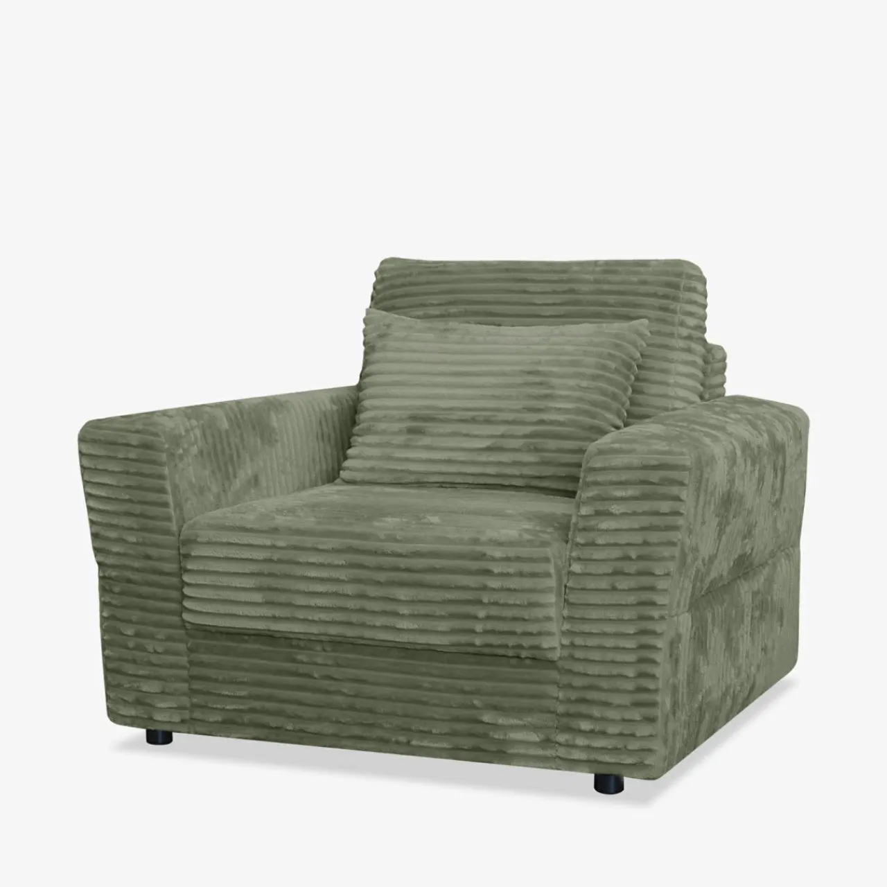 - Fotel pokryto puszystym sztruksem – siadając na nim, od razu poczujesz przyjemną miękkość i otulenie.