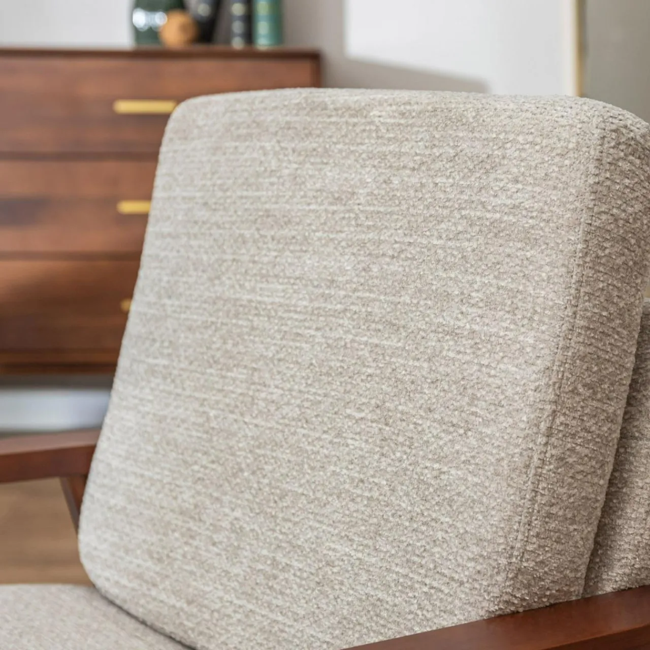 Chcesz dodać do swojego wnętrza prawdziwego retro akcentu? Postaw w nim fotel CROXTA w beżowej kolorystyce. Prosta forma inspirowana latami 80. będzie stylowo wyglądać w towarzystwie ciemnych mebli na wysokich nóżkach i wzorzystego dywanu w intensywnych kolorach.