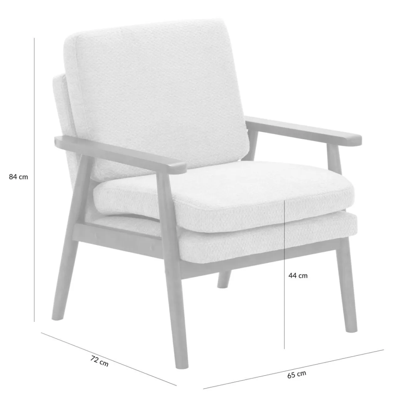 - Fotel ma wysokość tylko 84 cm, dzięki czemu postawisz go przy niskiej ławie kawowej.