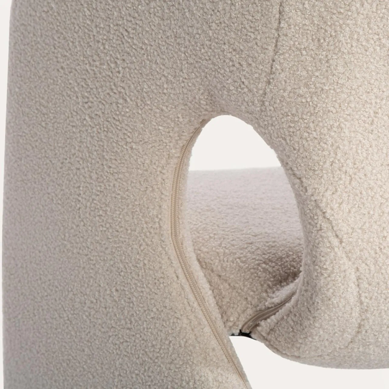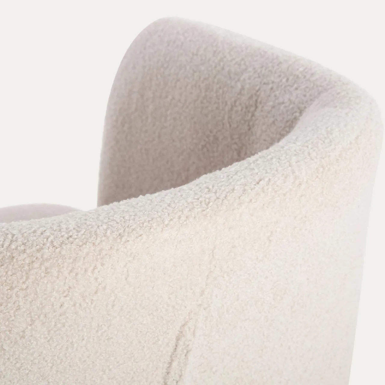 - Fotel pokryto miłą w dotyku tkaniną boucle w odcieniu beżowym. Siadając na nim, poczujesz przyjemną miękkość.