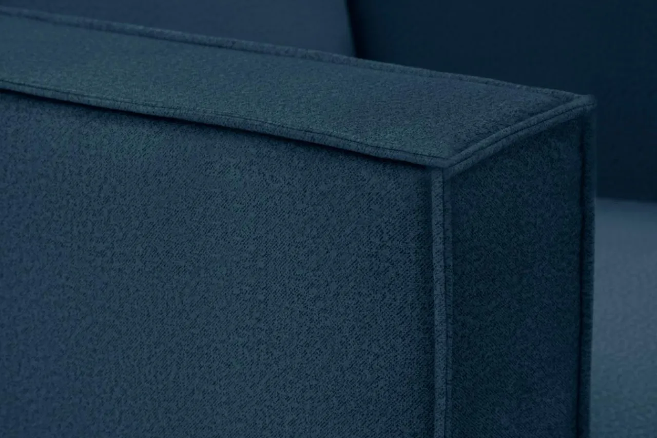 - Tapicerka została wykonana z miękkiej w dotyku, welurowej tkaniny w granatowym kolorze.