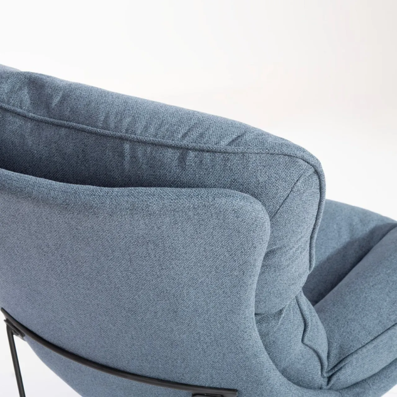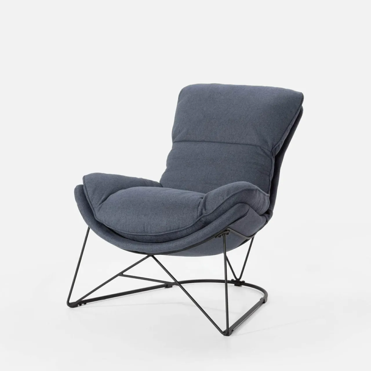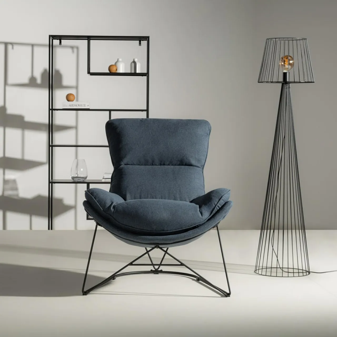 - Metalowa podstawa w czarnym kolorze przełamuje obszerną formę fotela i wpisze się w surowe, industrialne wnętrza.