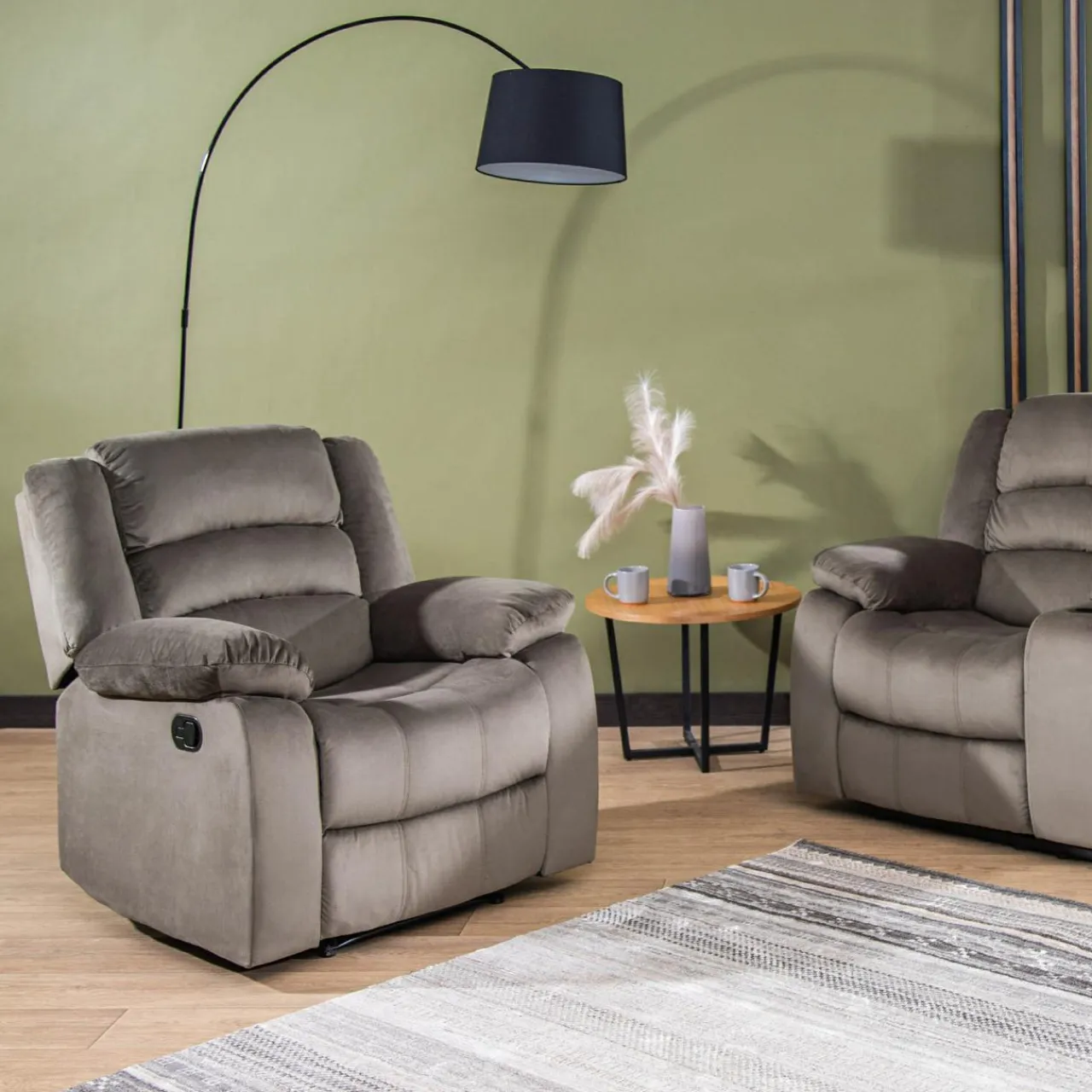 - Welurowa tkanina i delikatny kolor cappuccino wprowadzą przytulny klimat do Twojego salonu.