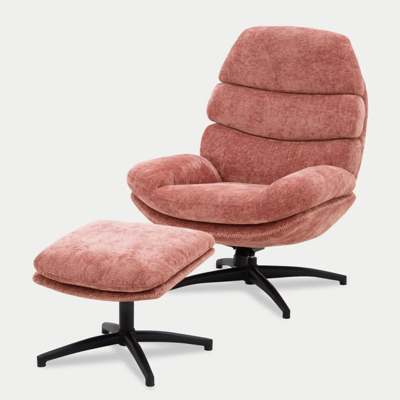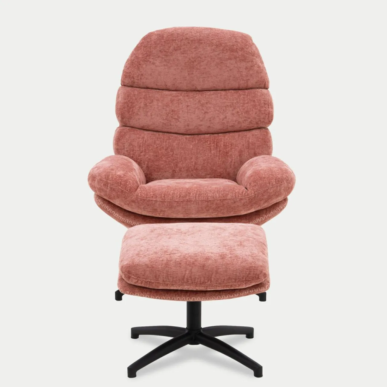 - Obicie fotela i podnóżka zostało wykonane z przyjemnej w dotyku tkaniny w kolorze różowym.
