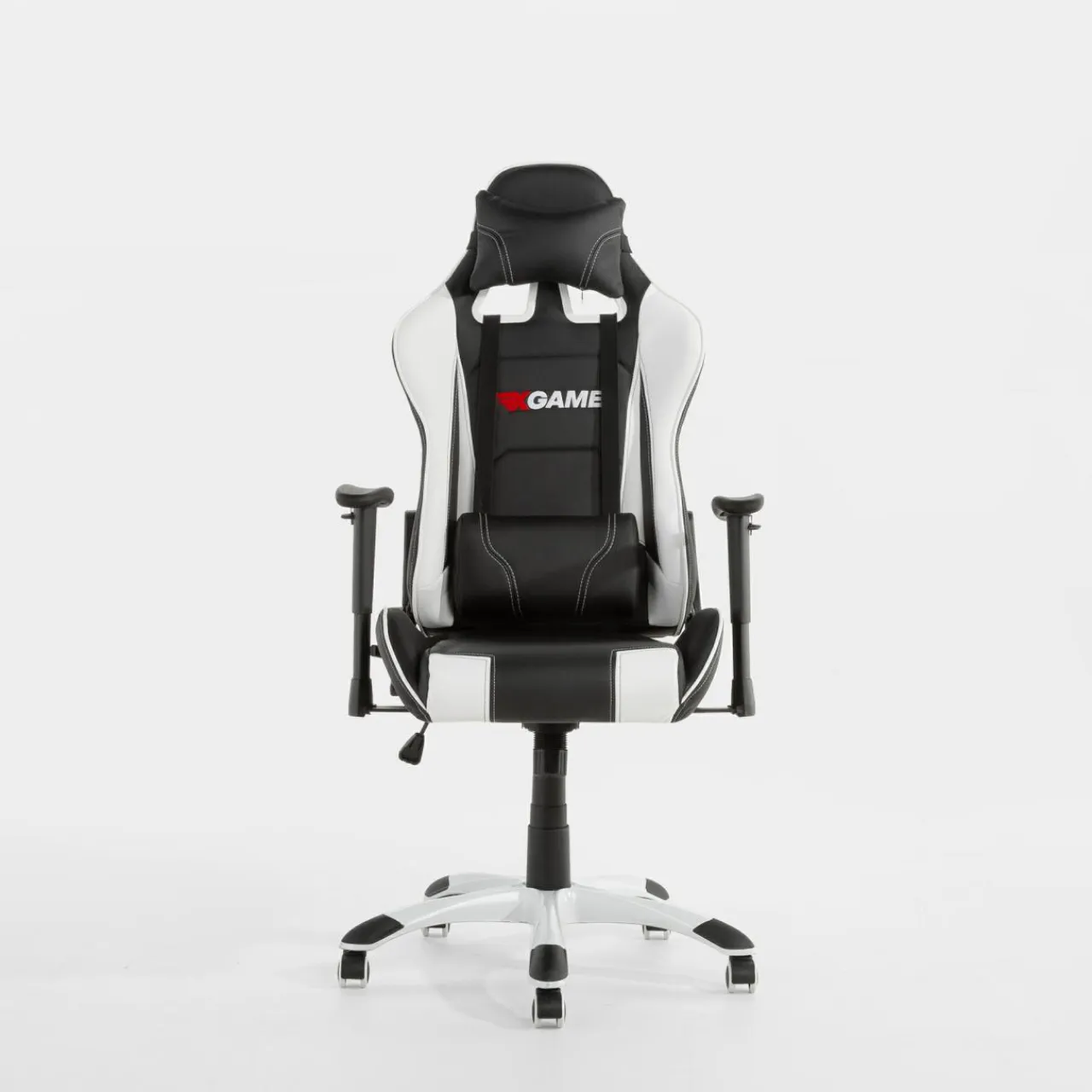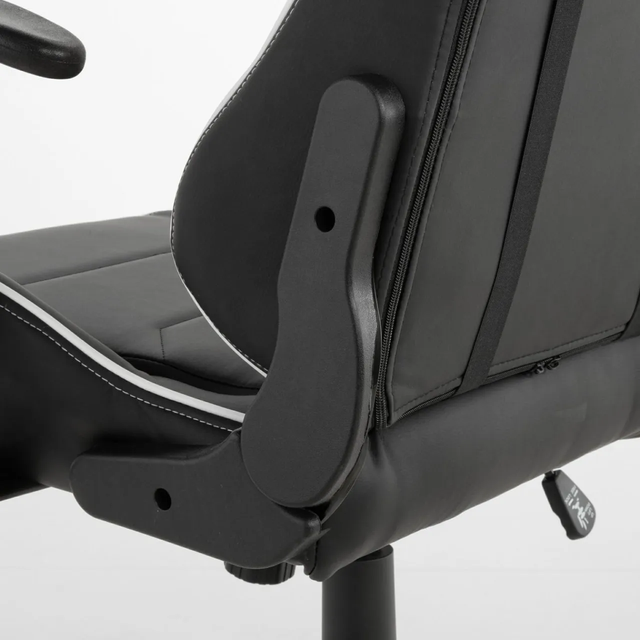 - Fotel wykończono skórą ekologiczną. Czarno-biała kolorystyka mebla nadaje mu typowo sportowy charakter.