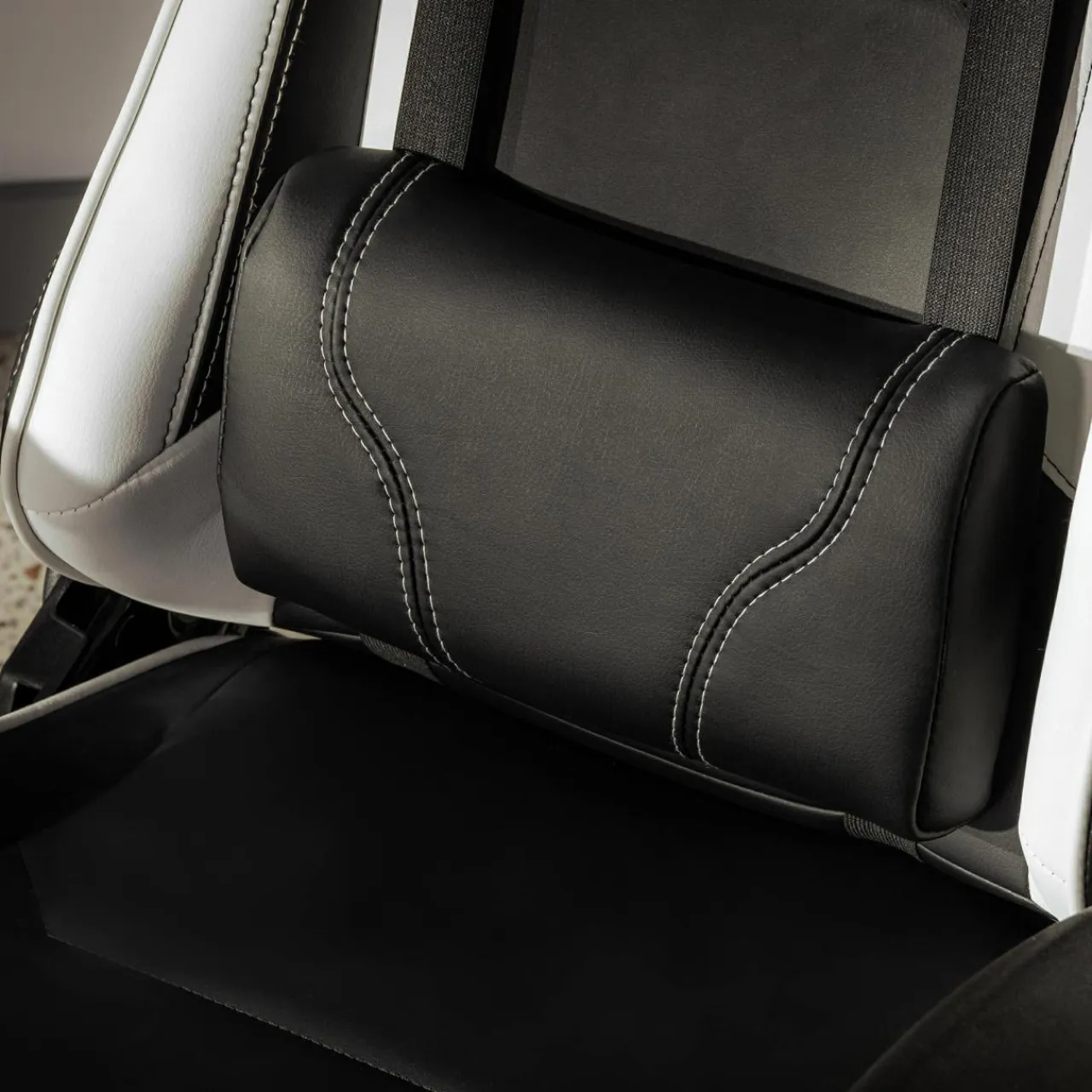 - Miękka poduszka pod częścią lędźwiową kręgosłupa wspiera utrzymanie prawidłowej postawy ciała. Dzięki zastosowaniu specjalnych pasów można regulować jej wysokość. Wpływa to korzystnie na stymulację kręgosłupa i minimalizuje negatywne skutki długiego przebywania w pozycji siedzącej.