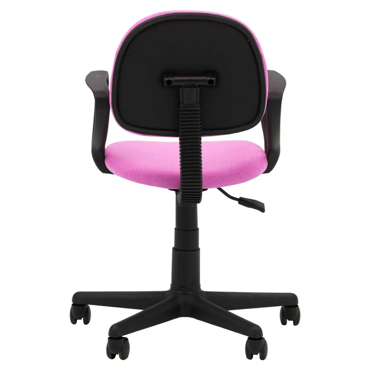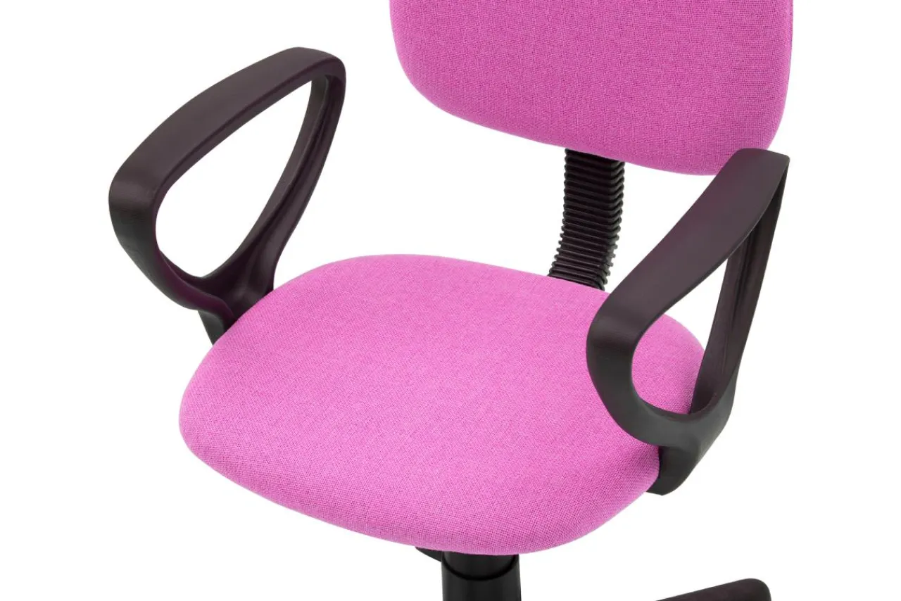 Wybierz fotel obrotowy NUPIG z różową tapicerką i czarną podstawą.