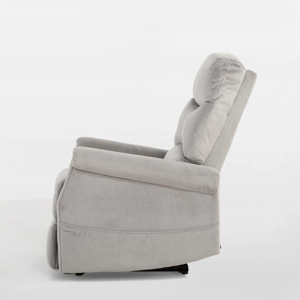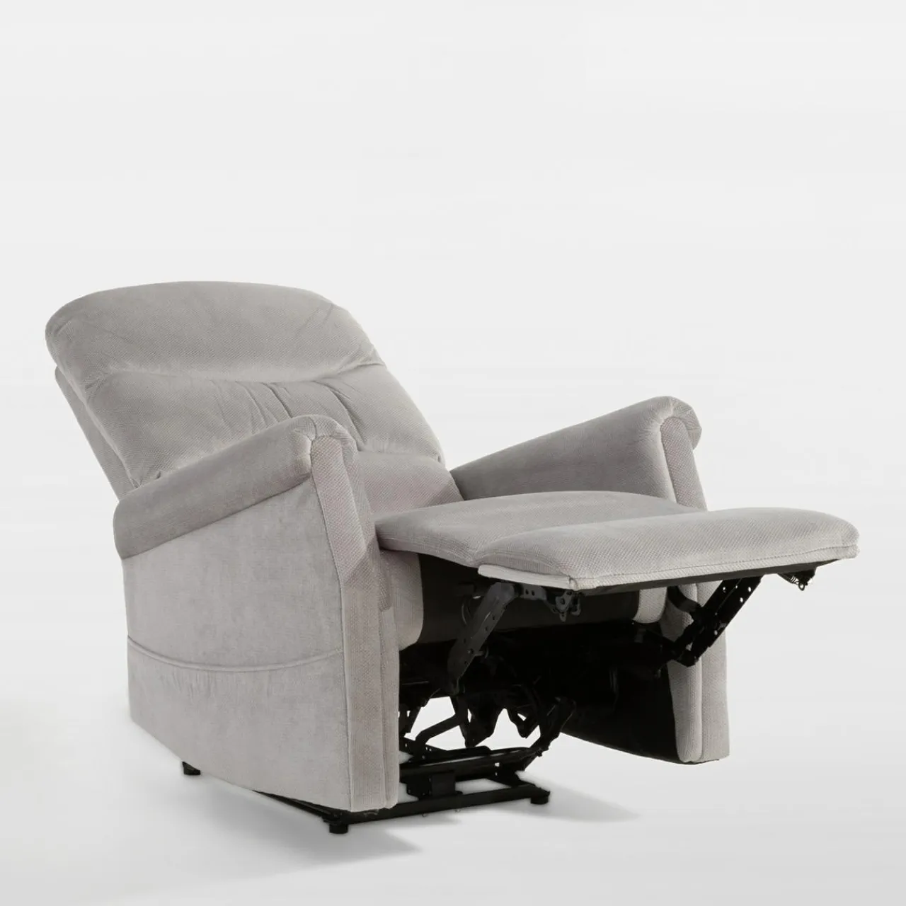 - Po kliknięciu włącznika na pilocie oparcie odchyla się, a dolna część siedziska przekształca się w wygodny podnóżek, co daje podparcie na całej długości ciała.