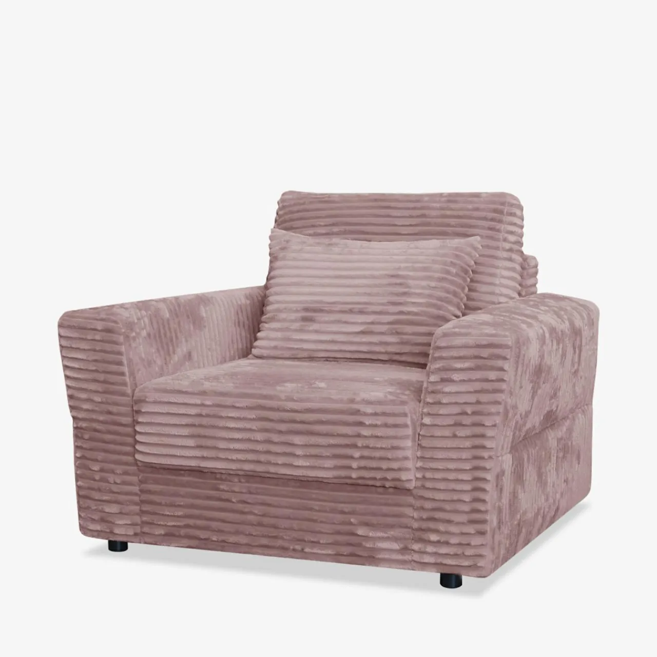 - Fotel pokryto puszystym sztruksem – siadając na nim, od razu poczujesz przyjemną miękkość i otulenie.