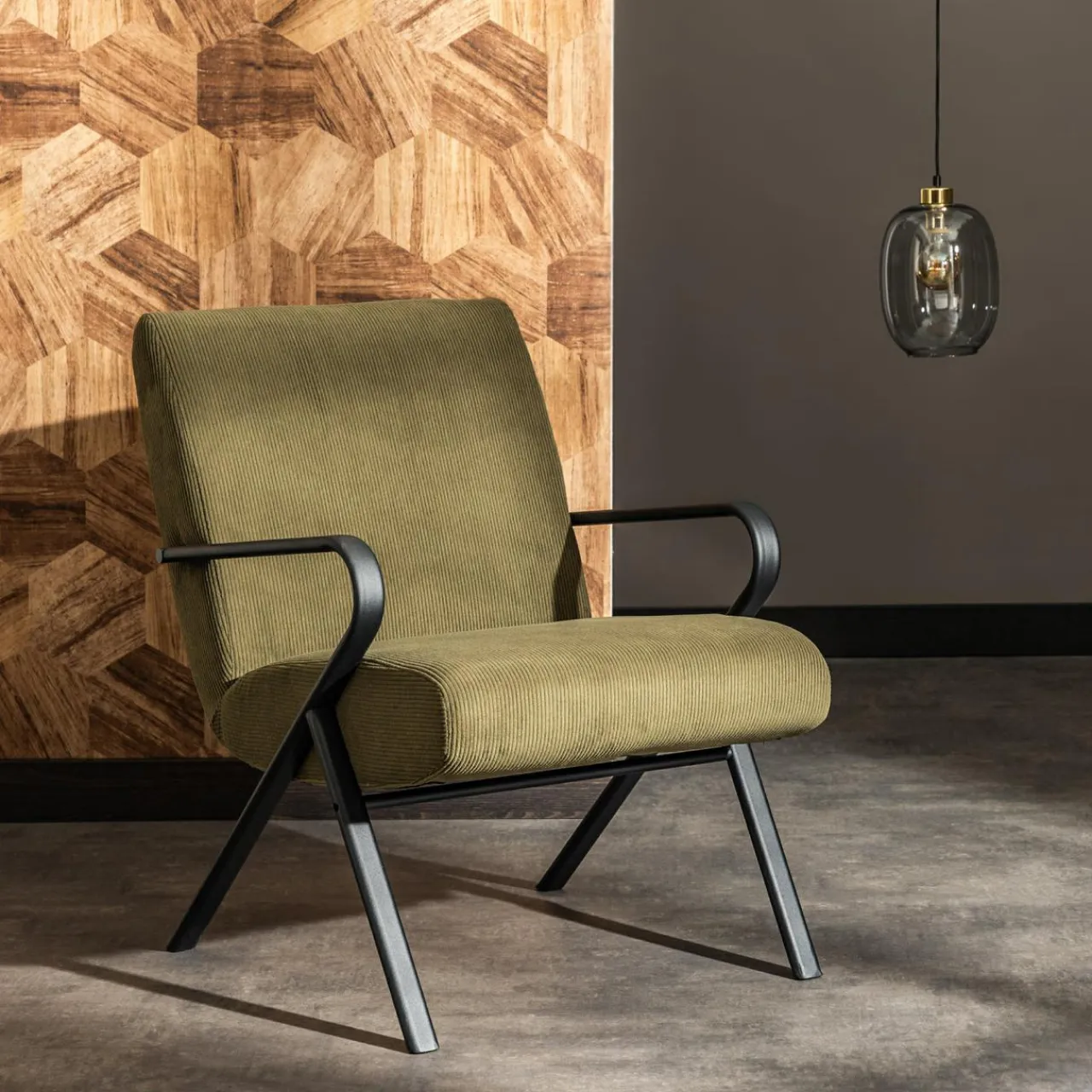 Lubisz oldschoolowy design? Fotel CAPENBAR powstał z myślą o wnętrzach urządzonych w stylu retro. Przykuje Twój wzrok ciemnozielonym kolorem i podstawą w geometrycznym kształcie.