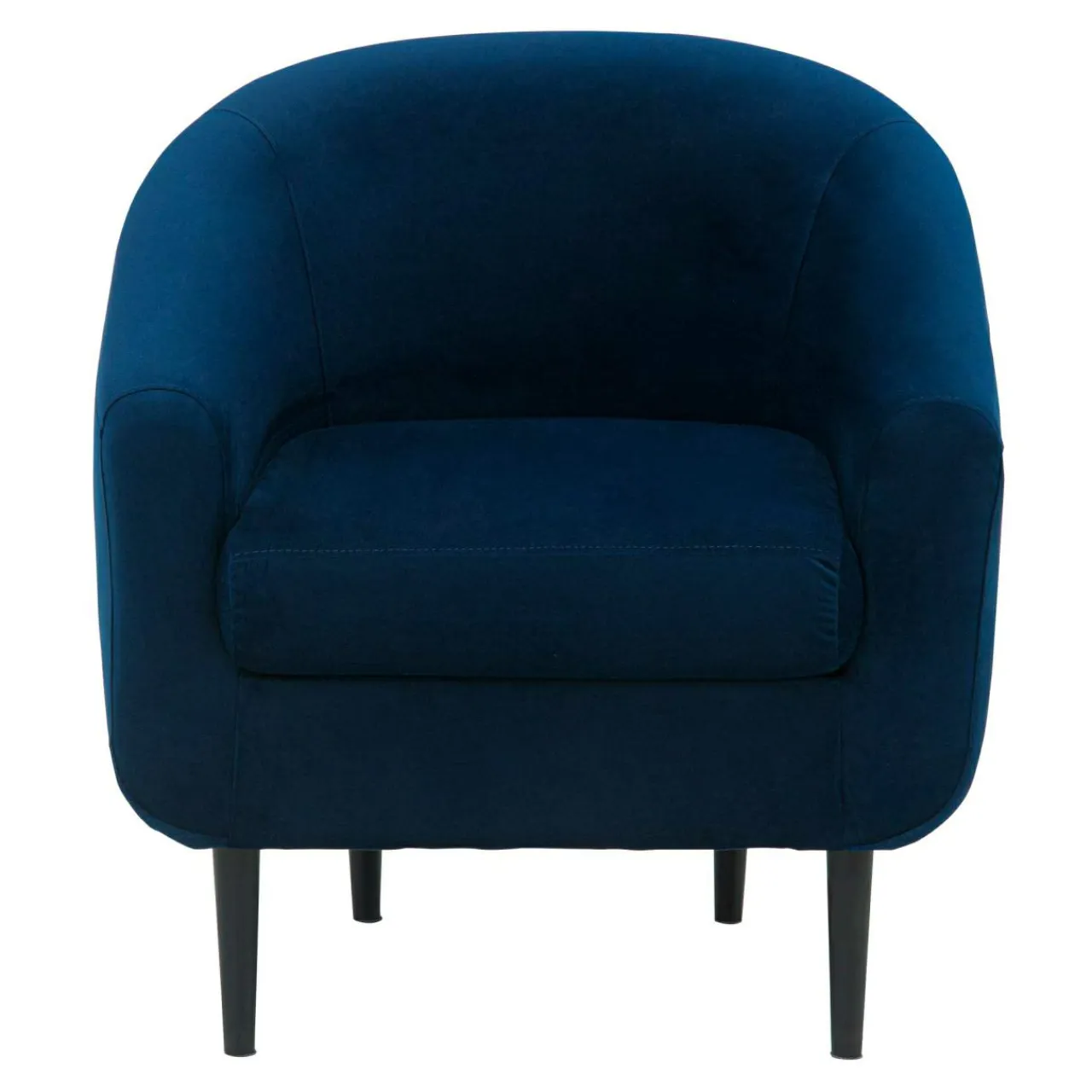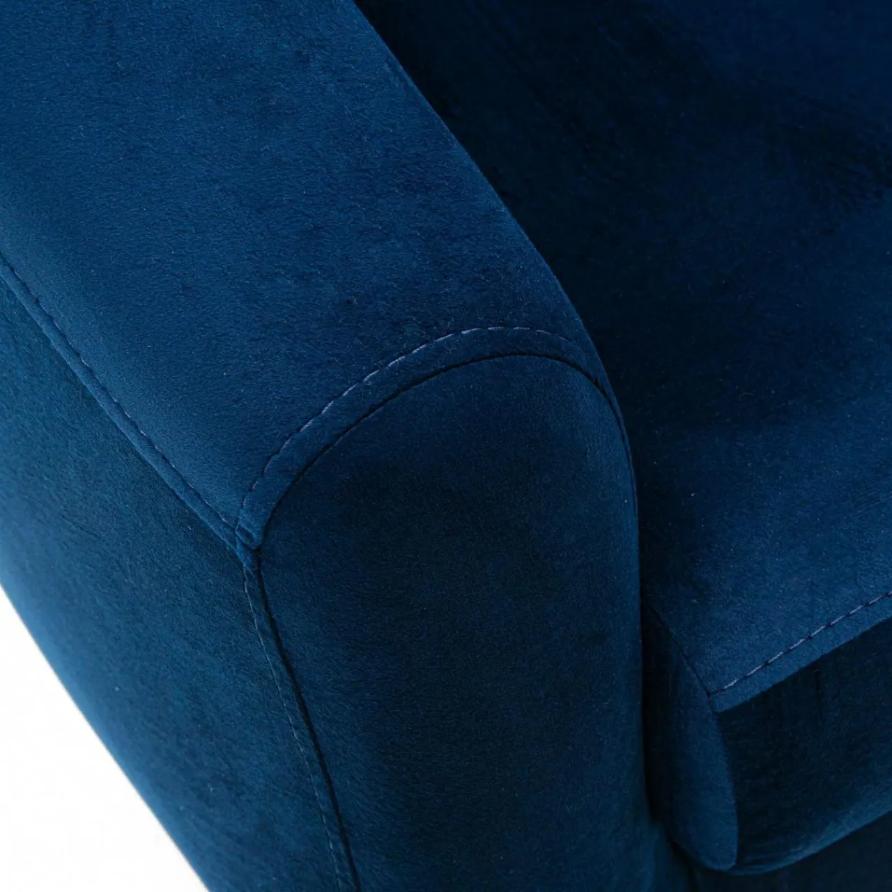 Fotel MILTON pokryto welurową tkaniną w pięknym odcieniu navy blue, dzięki czemu przykuwa uwagę i pięknie skomponuje się z ciemnym umeblowaniem pomieszczenia.