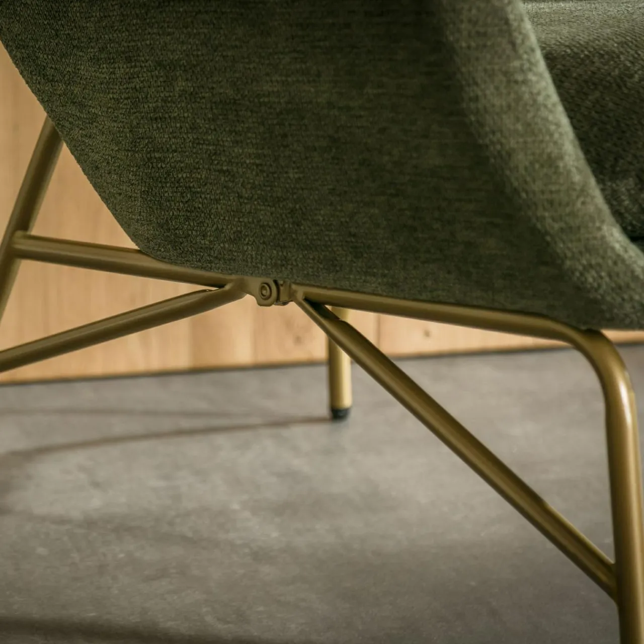 - Konstrukcja podtrzymuje złota podstawa na nogach, która podkreśla designerski wygląd fotela.