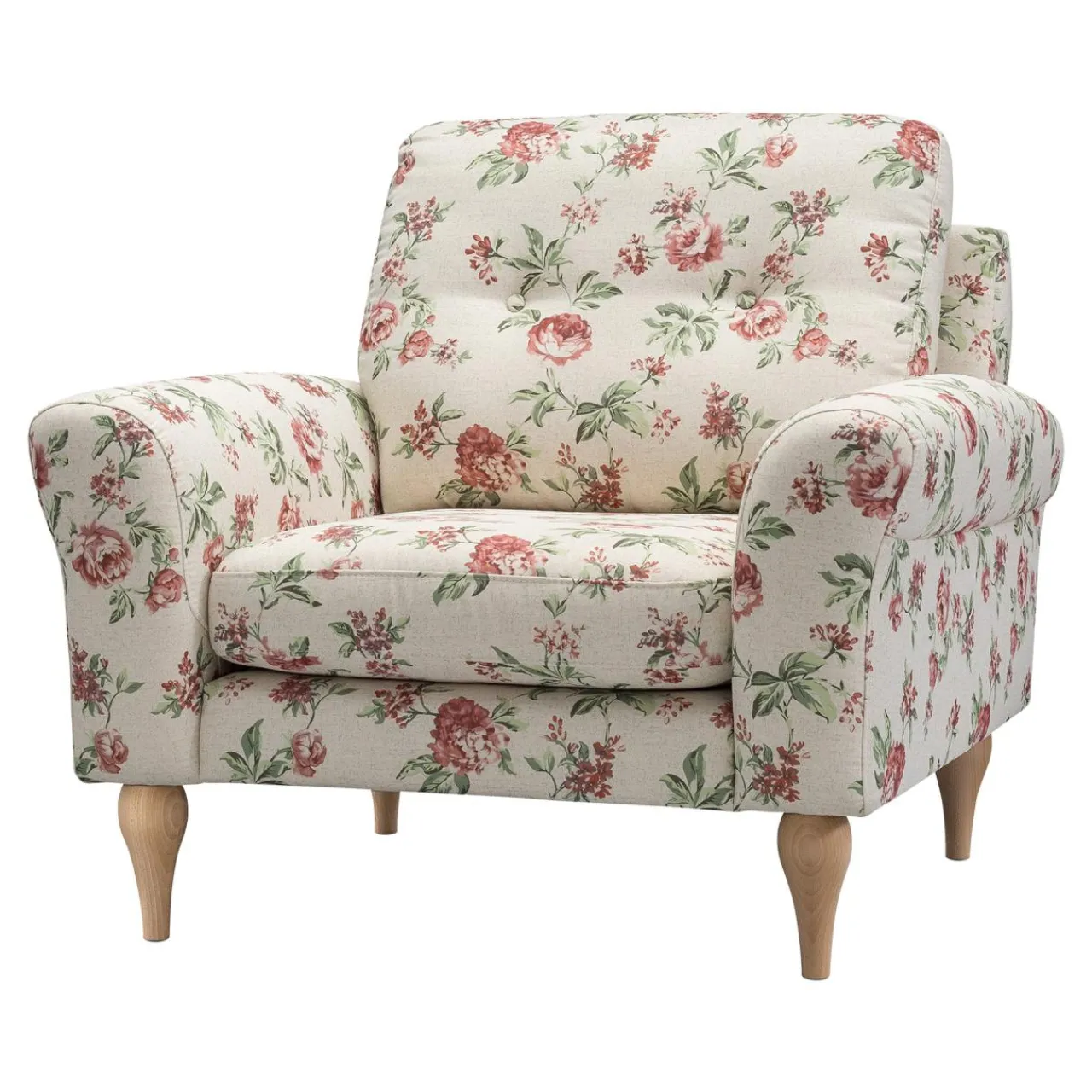 Kolekcja ROSE utrzymana jest w kwiatowych motywach, nawiązujących do stylu angielskiego. Składa się z sofy, fotela i pufa, które razem stworzą elegancką strefę wypoczynkową w Twoim salonie. Wzór róż oraz wysokie, ozdobne nóżki z drewna będą nietuzinkową wizytówką Twojego salonu, dodając mu niezwykłej klasy i wdzięku.