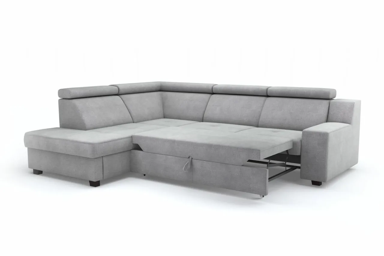 Stelaż pod siedziskiem wysuwamy i podnosimy za pomocą uchwytu. Mebel nie wymaga odsuwania od ściany. Idealny do okazjonalnego spania.