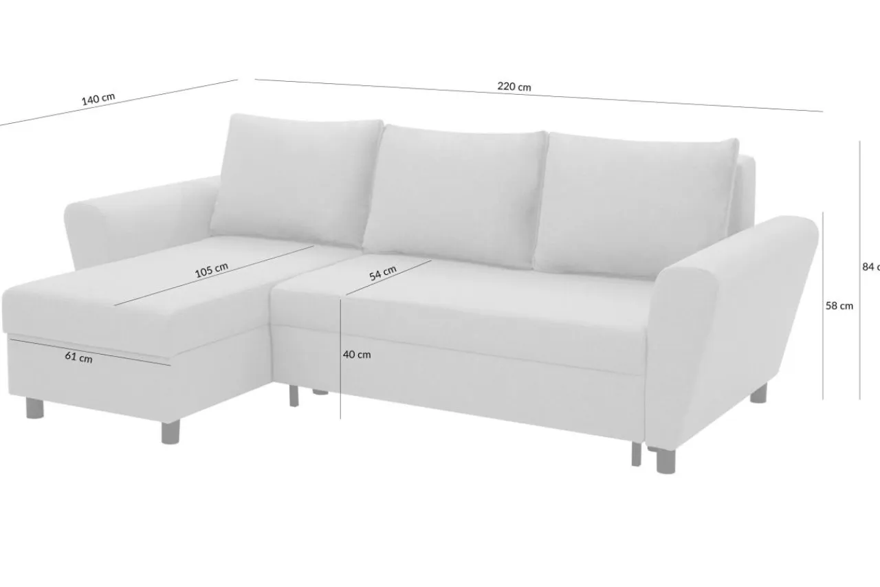 - Narożnik posiada aż 2 pojemniki, które możesz wykorzystać zarówno jako schowki na pościel, jak i przestrzeń do przechowywania na drobiazgi.