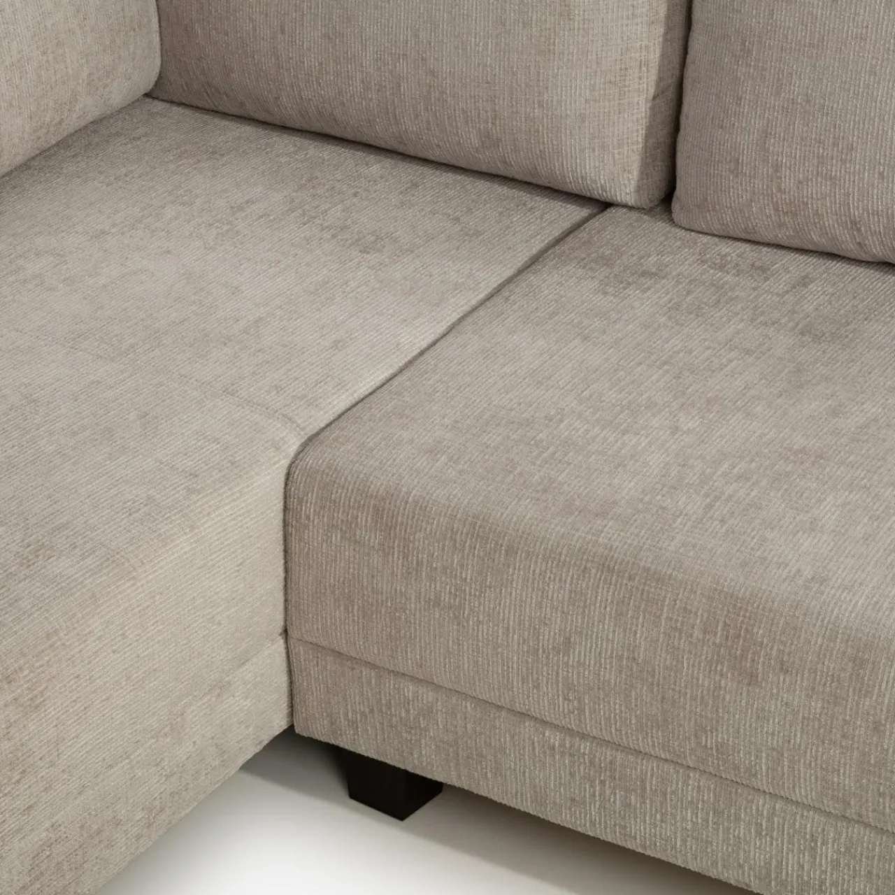 Narożnik MEDISON został wykończony plecionką w kolorze cappuccino. Krótki „meszek” tkaniny jest miękki dla skóry i przyjemny w odczuciach. Ciepły odcień beżu stworzy w salonie przytulną atmosferę, w której chętnie się zrelaksujesz.