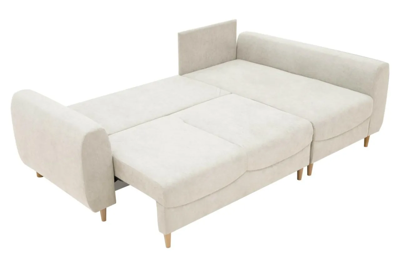- Drewniane nóżki są solidne i nadają narożnikowi nowoczesnego charakteru.