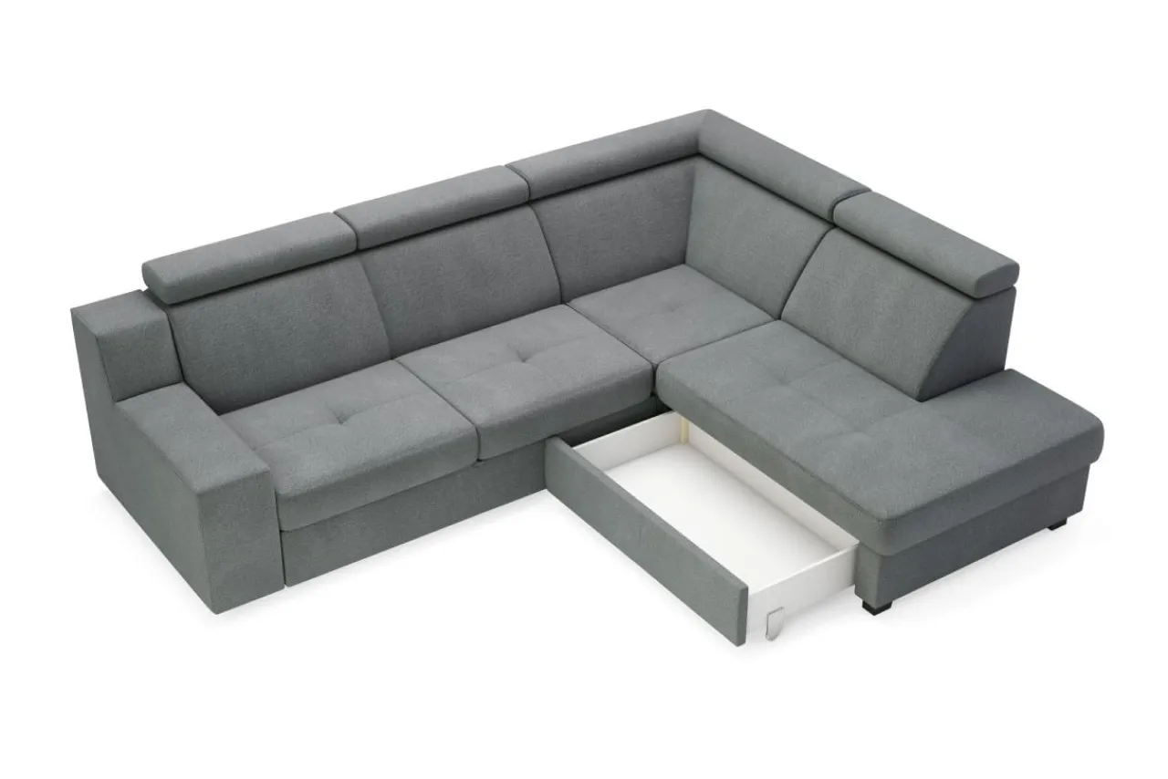Stelaż pod siedziskiem wysuwamy i podnosimy za pomocą uchwytu. Mebel nie wymaga odsuwania od ściany. Idealny do okazjonalnego spania.