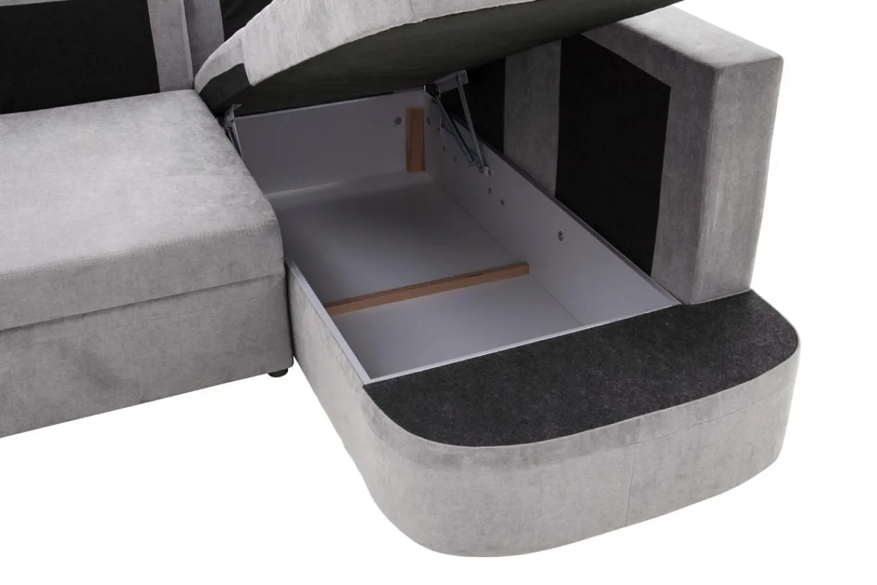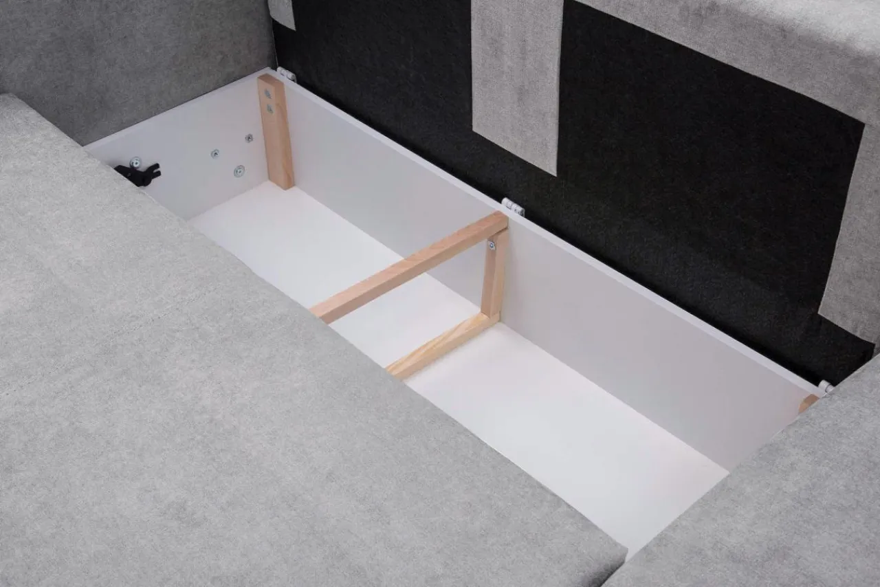 - W narożniku mieszczą się 2 pojemniki na pościel.