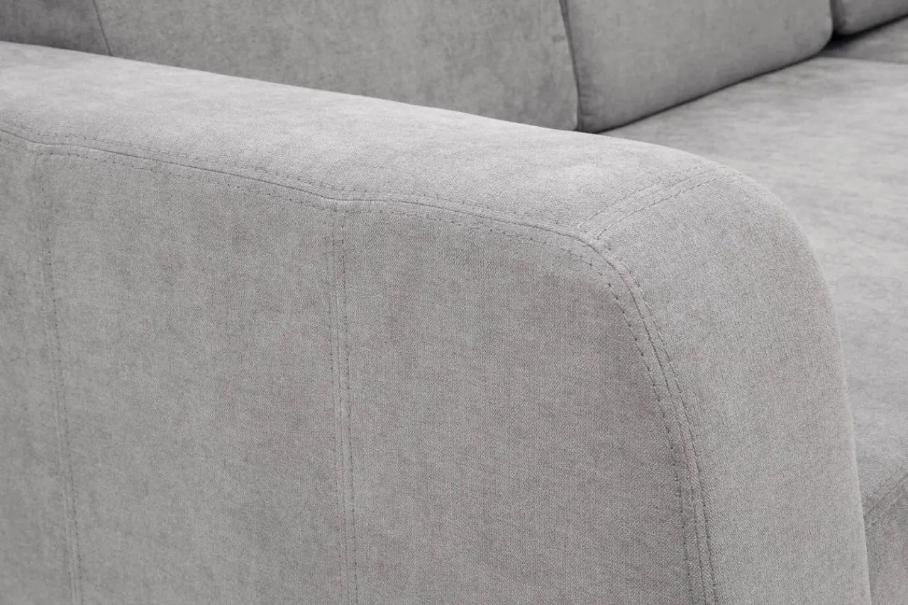 - Narożnik jest wykończony tkaniną ENJOY, która jest miękka i przyjemna w dotyku. Tkanina posiada drobną strukturę, delikatnie wyczuwalną pod palcami.