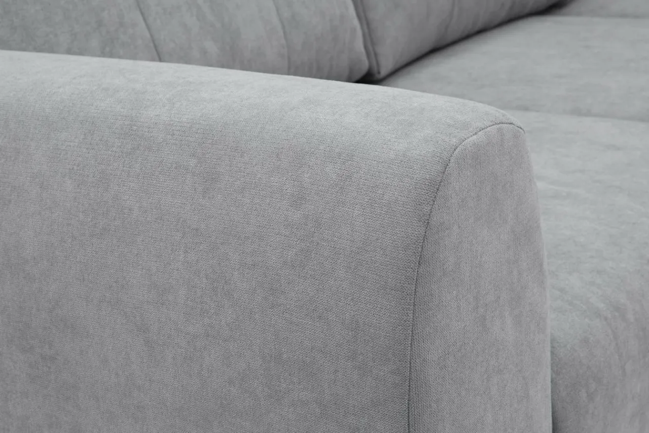 Szara kolorystyka tkaniny sprzyja wyciszeniu. Przyjemna w dotyku tkanina pozwala zatopić się w siedzisku i wypoczywać wygodnie w rodzinnym gronie.