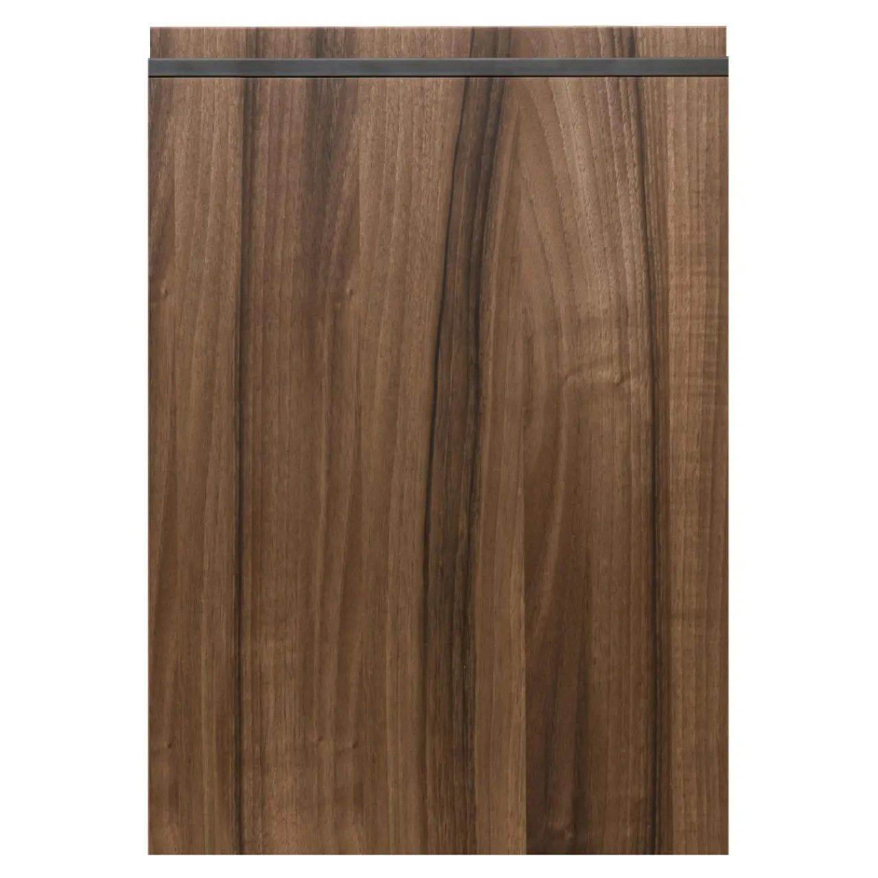 Dekor w kolorze drewna z doskonale widocznym usłojeniem sprawia, że front świetnie wygląda w połączeniu z jasnymi odcieniami bieli i oraz czerni. Dodatkową zaletą jest uchwyt wykończony czarną, aluminiową listwą.