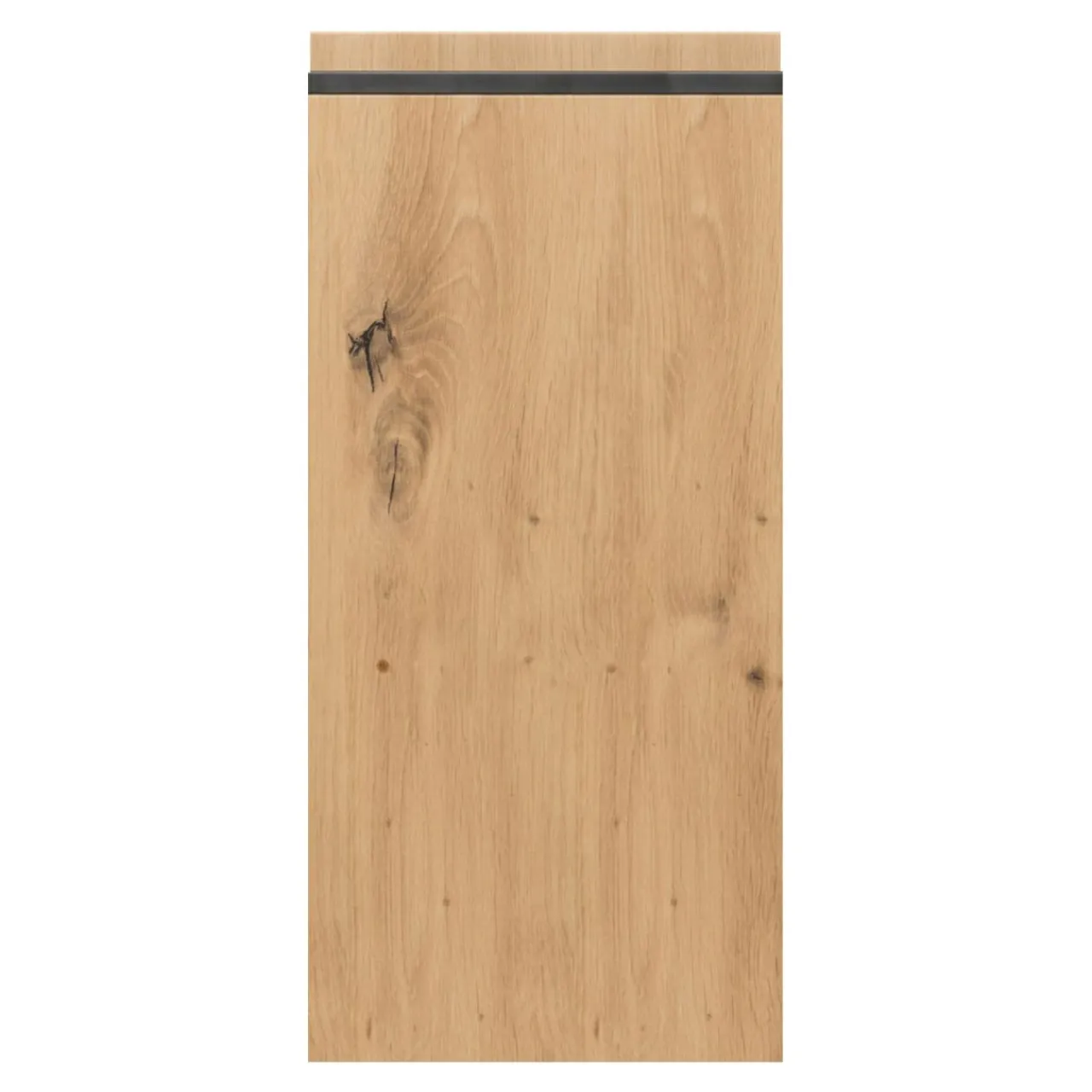 Dekor w kolorze drewna z doskonale widocznym usłojeniem sprawia, że front świetnie wygląda w połączeniu z jasnymi odcieniami bieli i szarości. Dodatkową zaletą jest uchwyt w formie frezu wykończonego czarną aluminiową listwą.