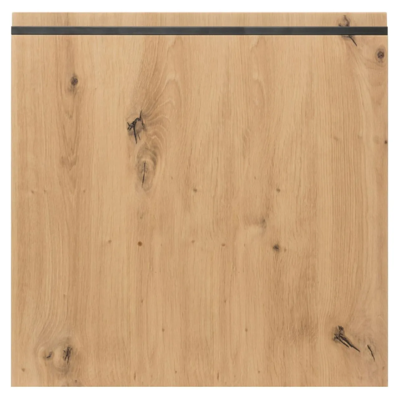 Dekor w kolorze drewna z doskonale widocznym usłojeniem sprawia, że front świetnie wygląda w połączeniu z jasnymi odcieniami bieli i szarości. Dodatkową zaletą jest uchwyt w formie frezu wykończonego czarną aluminiową listwą.