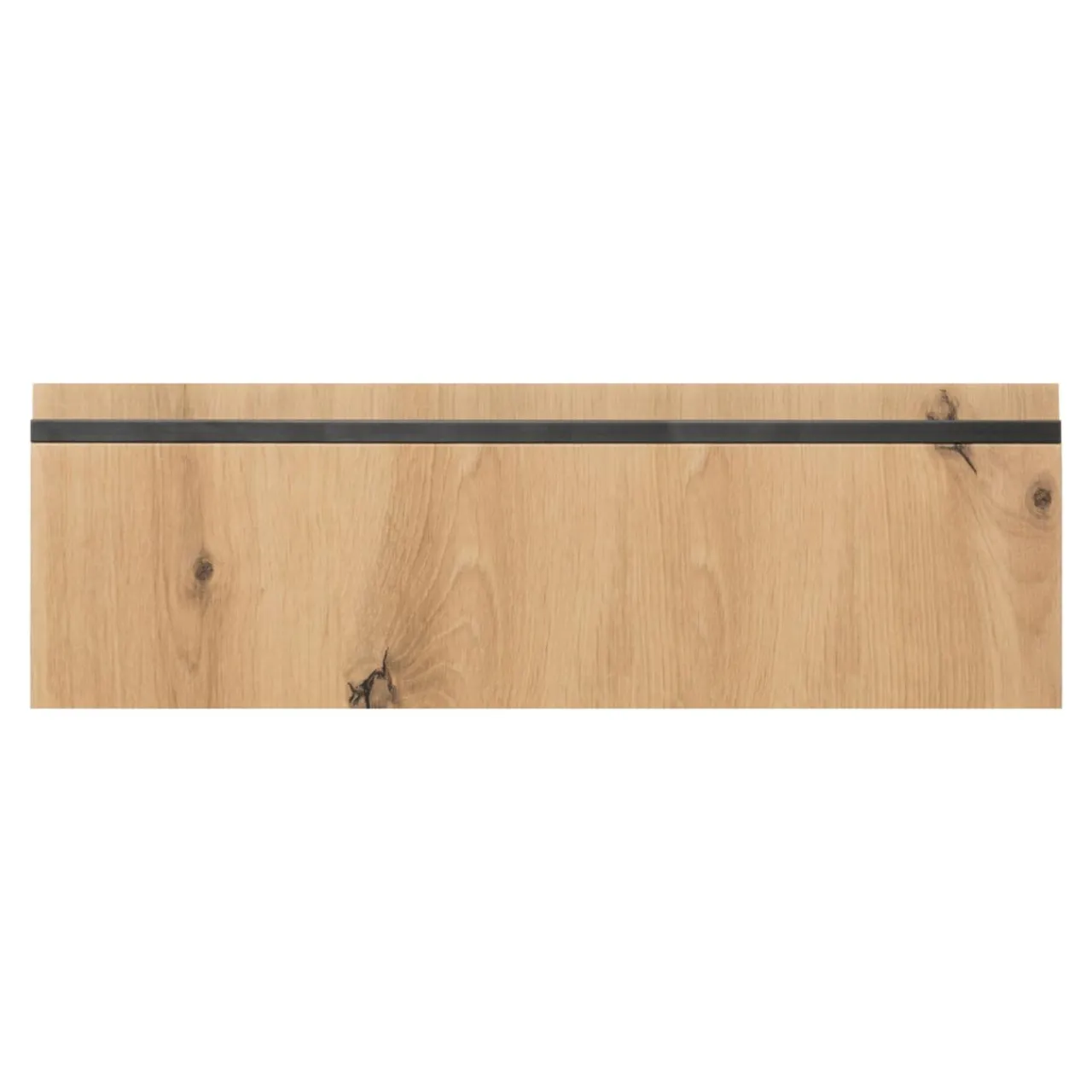 Dekor w kolorze drewna z doskonale widocznym usłojeniem sprawia, że front świetnie wygląda w połączeniu z jasnymi odcieniami bieli i szarości. Dodatkową zaletą jest uchwyt w formie frezu wykończonego czarną aluminiową listwą.