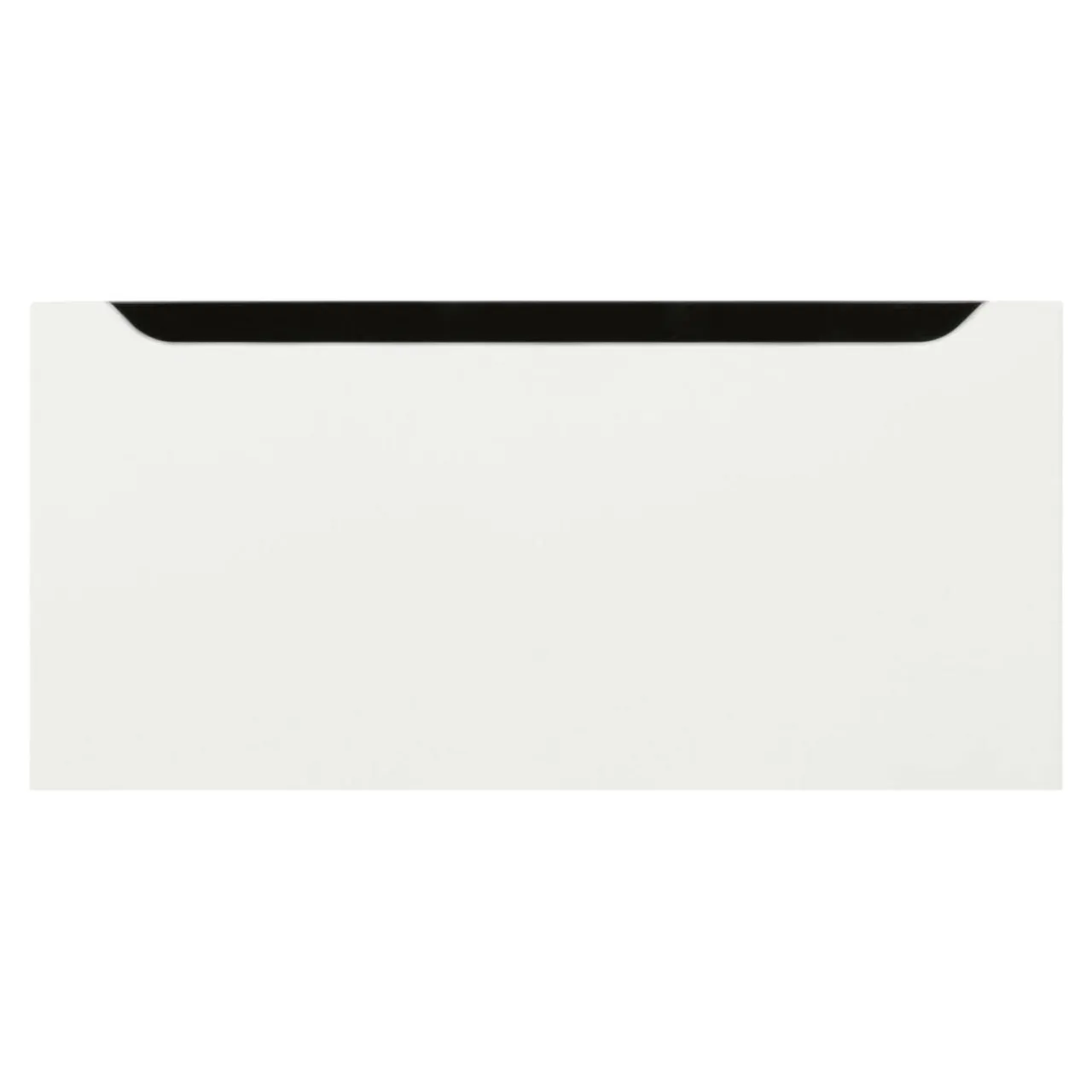 Niewątpliwą jego zaletą jest również łatwość czyszczenia, wysoka odporność na ścieranie. Dekor w białym kolorze z połyskiem sprawia, że front świetnie wygląda w połączeniu zarówno z jasnymi, jak i ciemnymi aranżacjami. Dodatkową zaletą jest uchwyt w formie frezu ze wstawką z czarnego lacobelu.