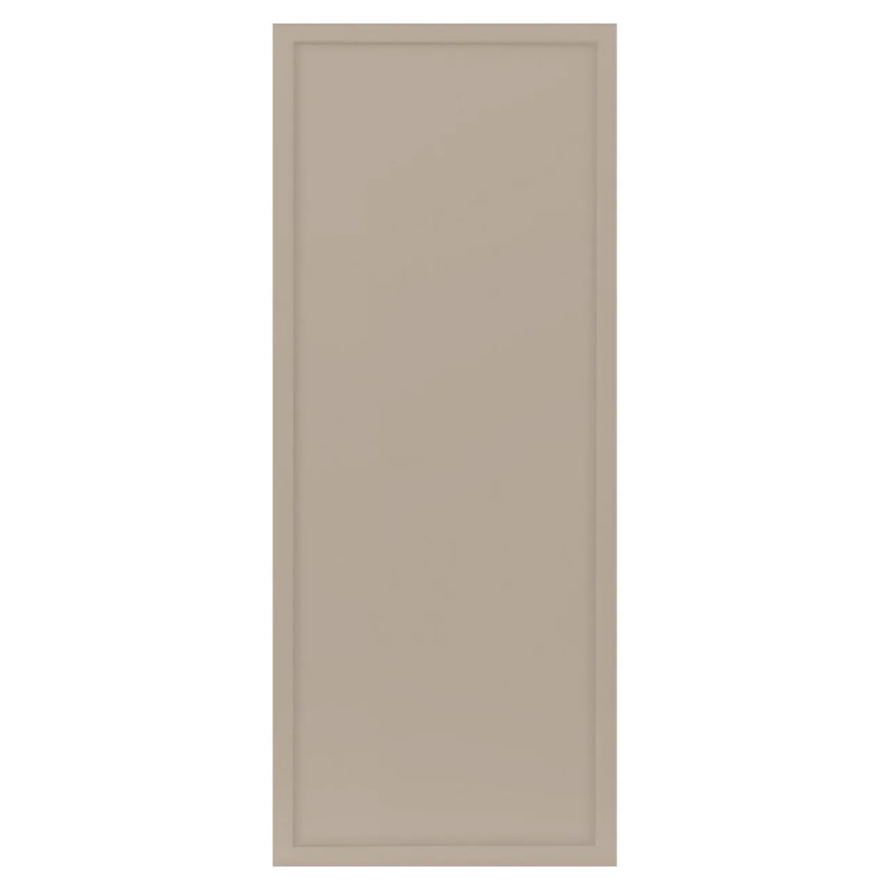 Front drzwi został wykończony folią PVC w szarym kolorze. Jego kolorystyka rozjaśnia optycznie pomieszczenie i doskonale sprawdza się w połączeniu z wnętrzami utrzymanymi w ciepłych barwach z drewnianymi meblami w naturalnych kolorach.
