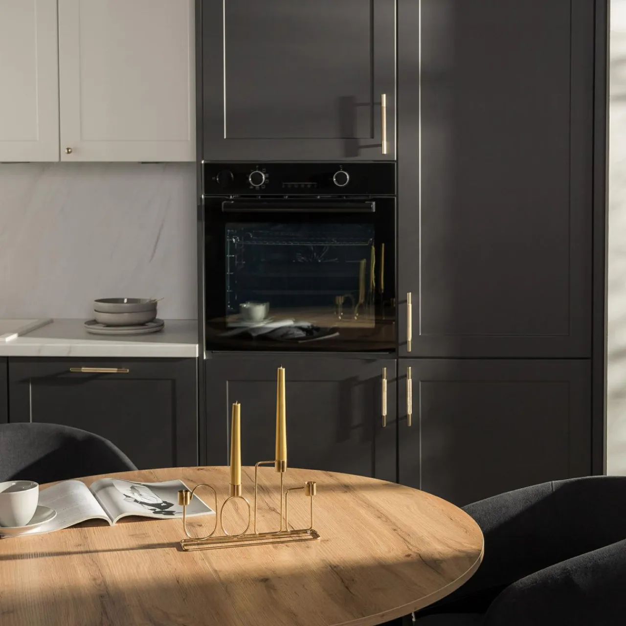 Model FRAME został wykonany z płyty MDF o grubości 1,8 cm – materiału trwałego, elastycznego i podatnego na obróbkę. Zaletą MDF jest również łatwość do utrzymania w czystości, co ma szczególne znaczenie, zwłaszcza przy meblach kuchennych.