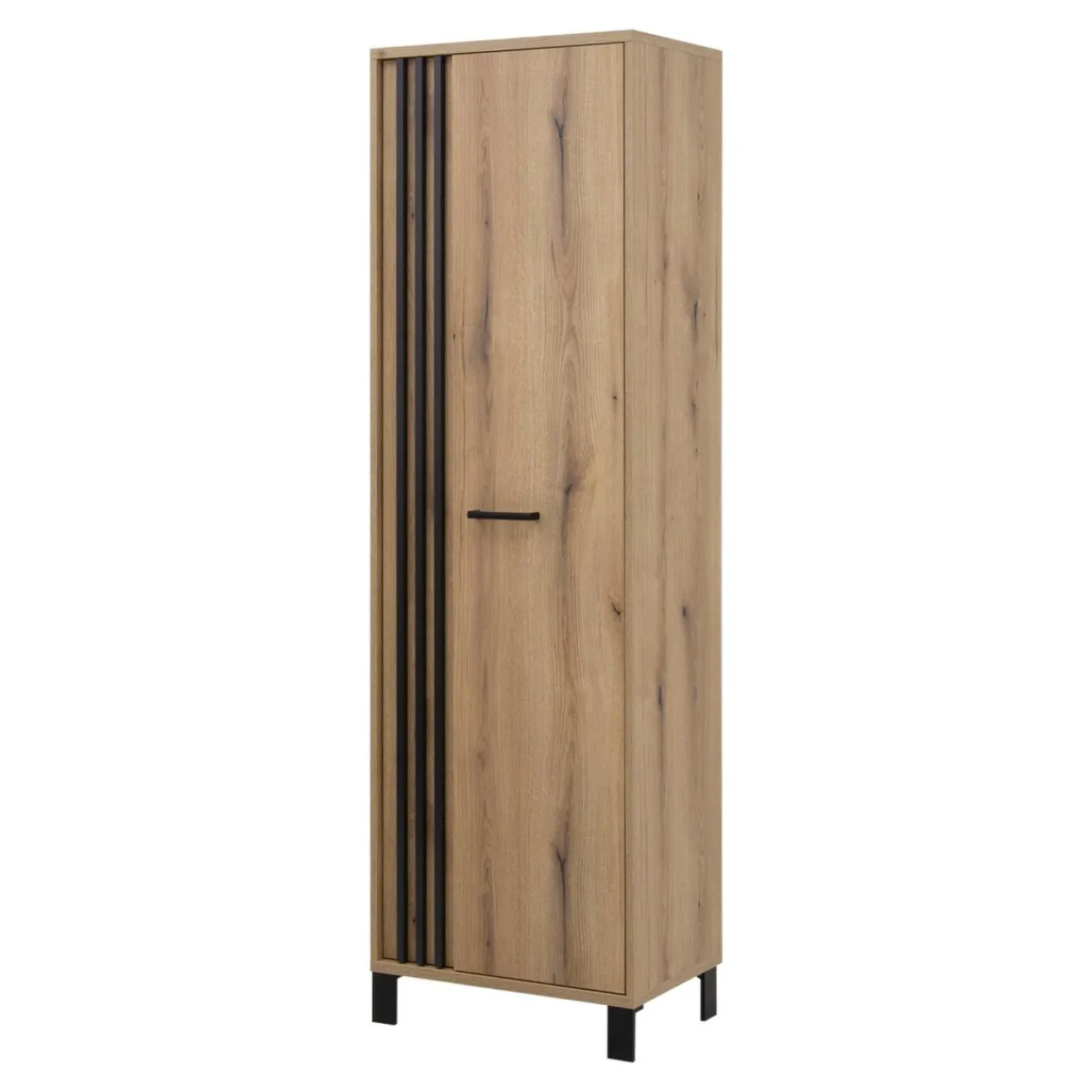 Kolekcja NOEL to połączenie laminatu imitującego drewno z czarnymi nóżkami i lamelami na froncie. To wszystko sprawia, że mebel odnajdzie się we wnętrzach urządzonych w stylu nowoczesnym i japandi.