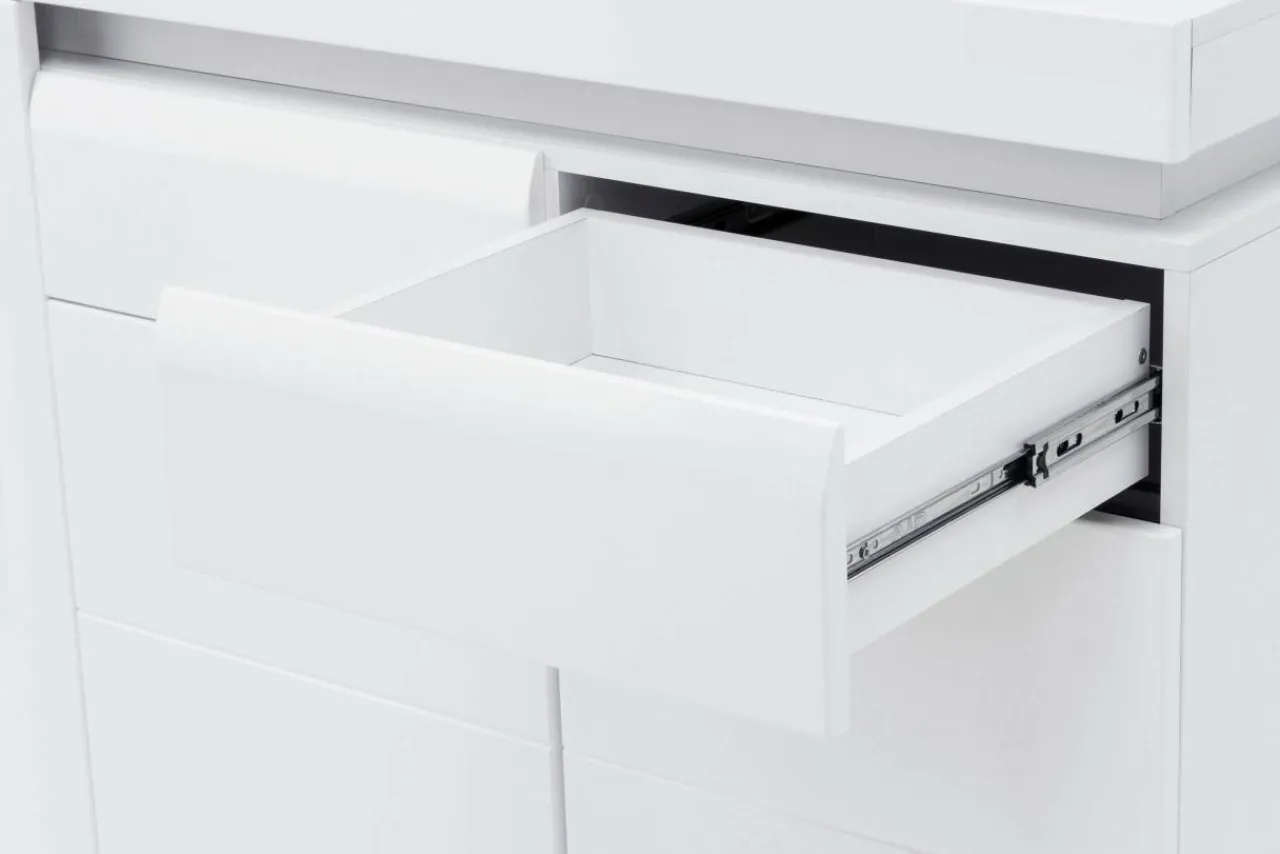 W drzwiach zamontowano zawiasy z systemem cichego domyku, dzięki czemu drzwi nie hałasują podczas zamykania.