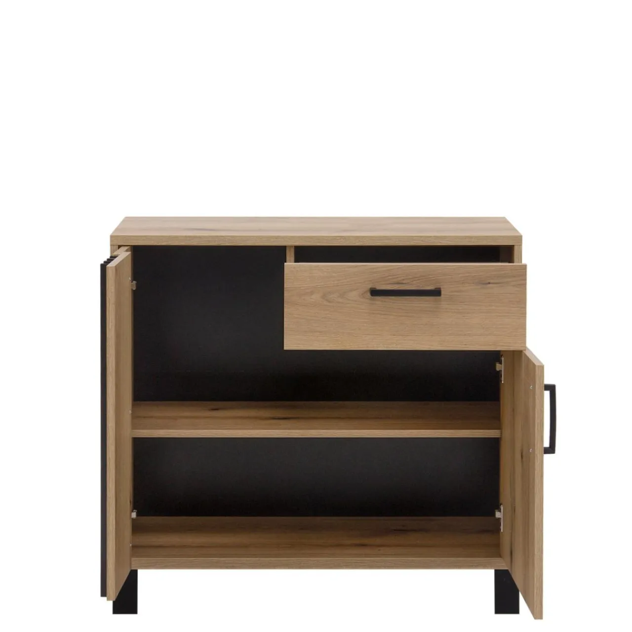 Szukasz nowoczesnego i praktycznego mebla do Twojego salonu? Komoda NOEL wyposażona w 2 wnęki ukryte za podwójnymi drzwiami i szufladę pozwala sprawnie uporządkować rzeczy.