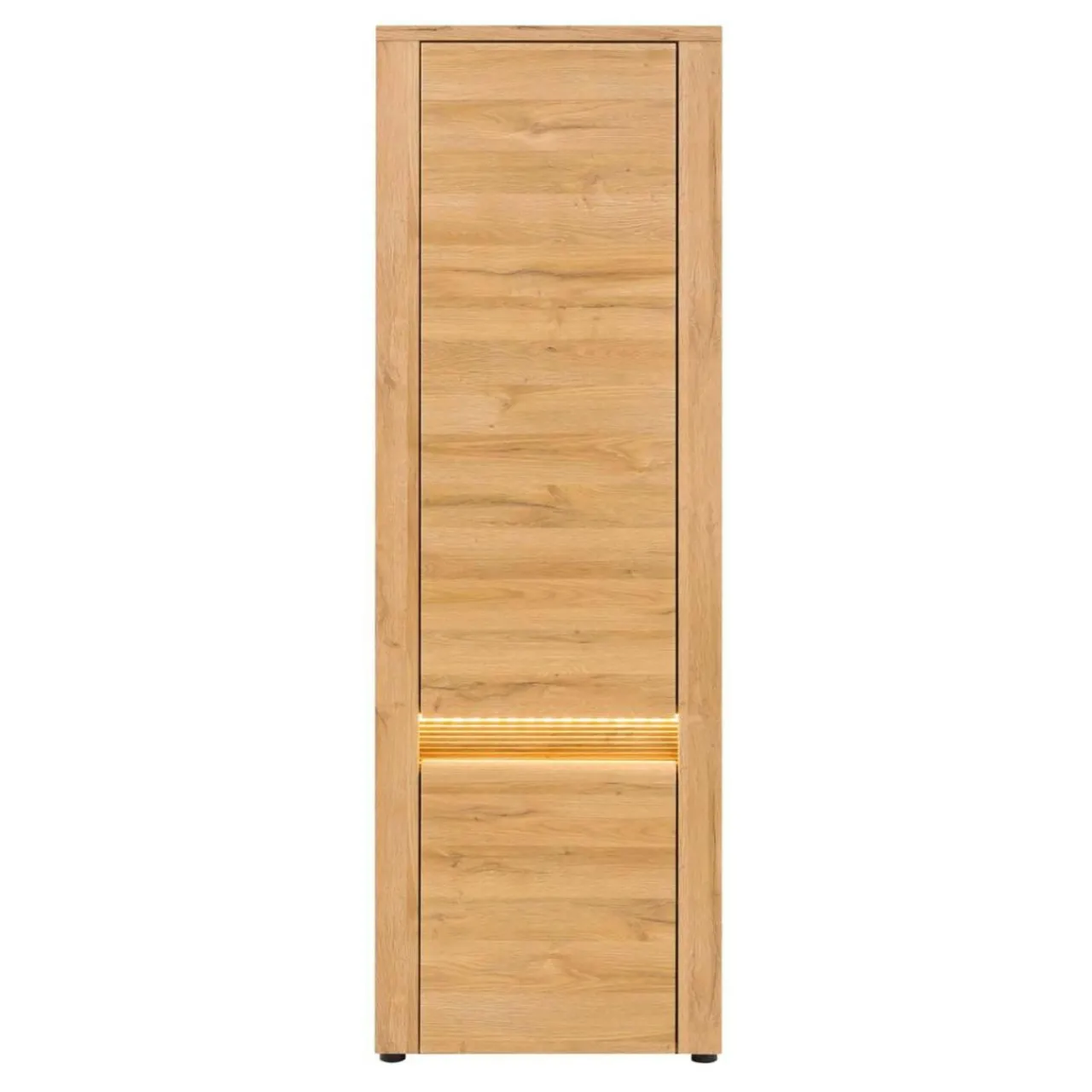 Wnętrze regału kryje praktyczne wnęki przedzielone półkami. Pomiędzy górnymi a dolnymi drzwiami zostało zamontowane oświetlenie LED. Tak skomponowany regał pomieści książki, ubrania, dokumenty i inne dowolne przedmioty a pełne drzwi, za którymi je schowamy, sprzyjają wrażeniu porządku w pomieszczeniu.