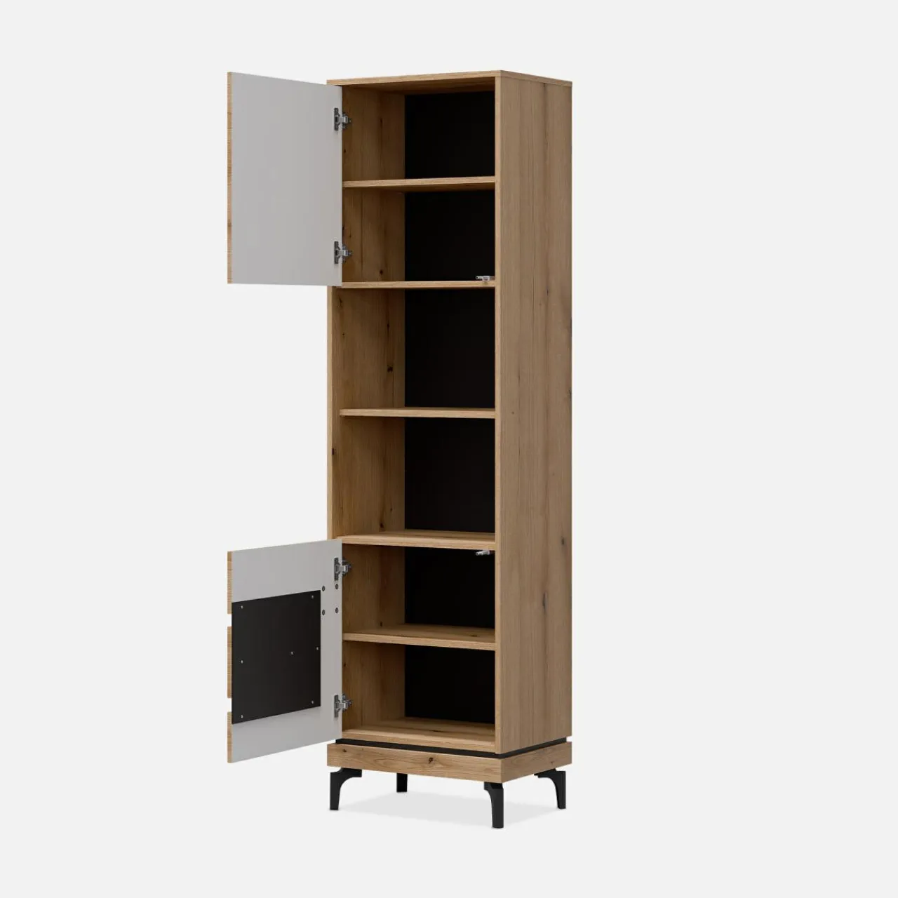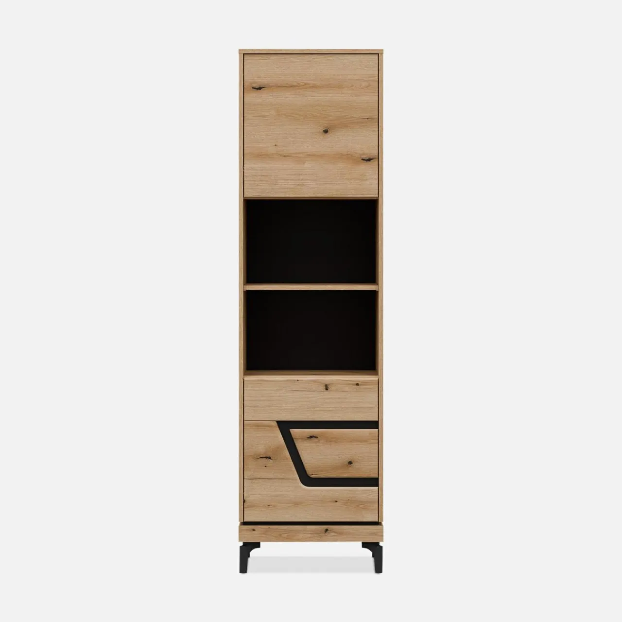 Regał KRIS zmieścisz nawet w małym pomieszczeniu. Uzupełnij ją przestrzeń między meblami, lub postaw na ścianie między pomieszczeniami, dzięki temu optycznie wydłużysz pomieszczenie.