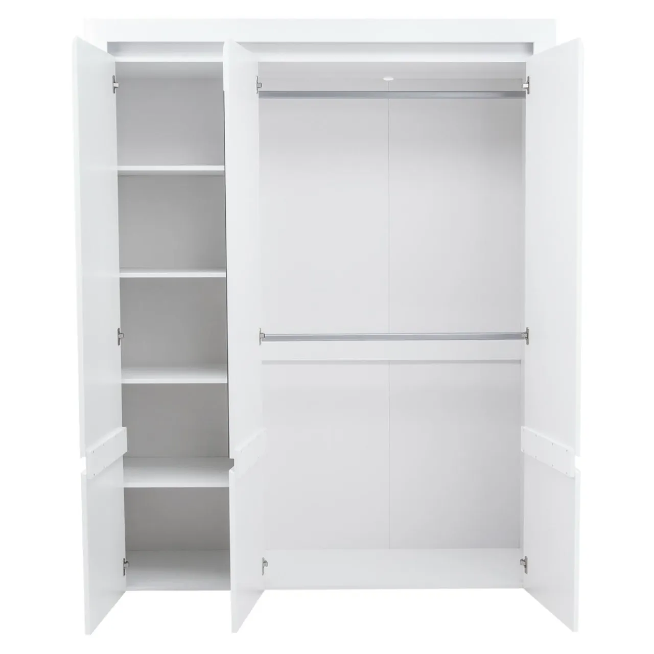 - Węższą część wyposażono w 4 półki, na których możesz trzymać poskładane ubrania.