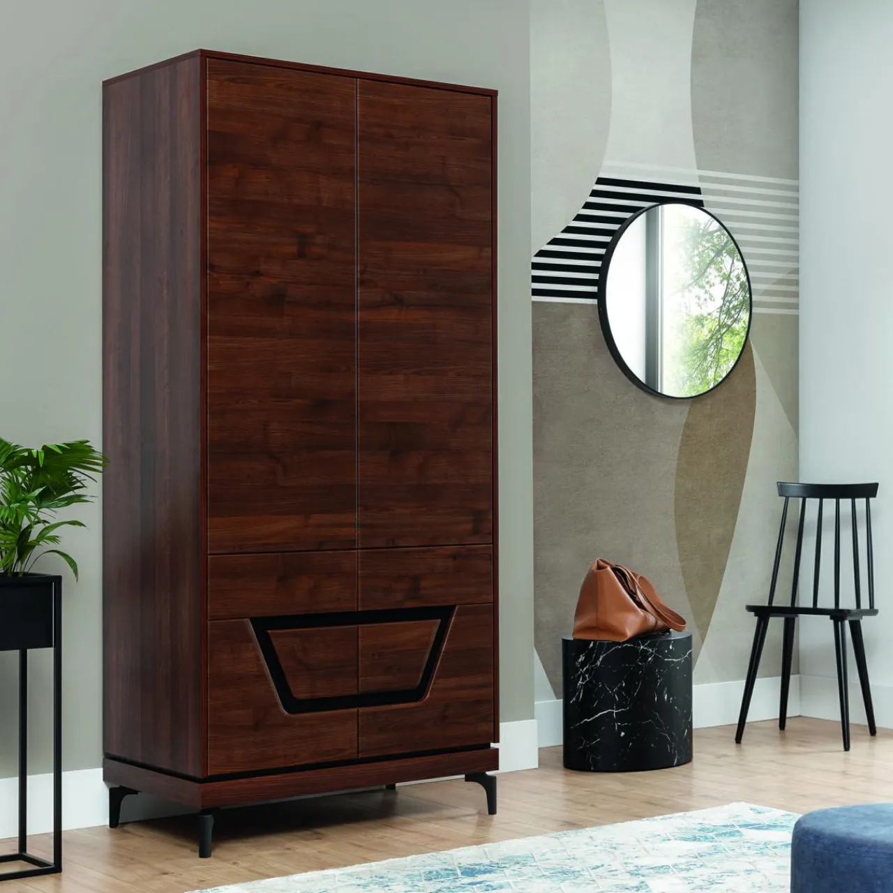 - W 2 wnękach przechowasz obuwie i dodatki – szaliki, czapki.