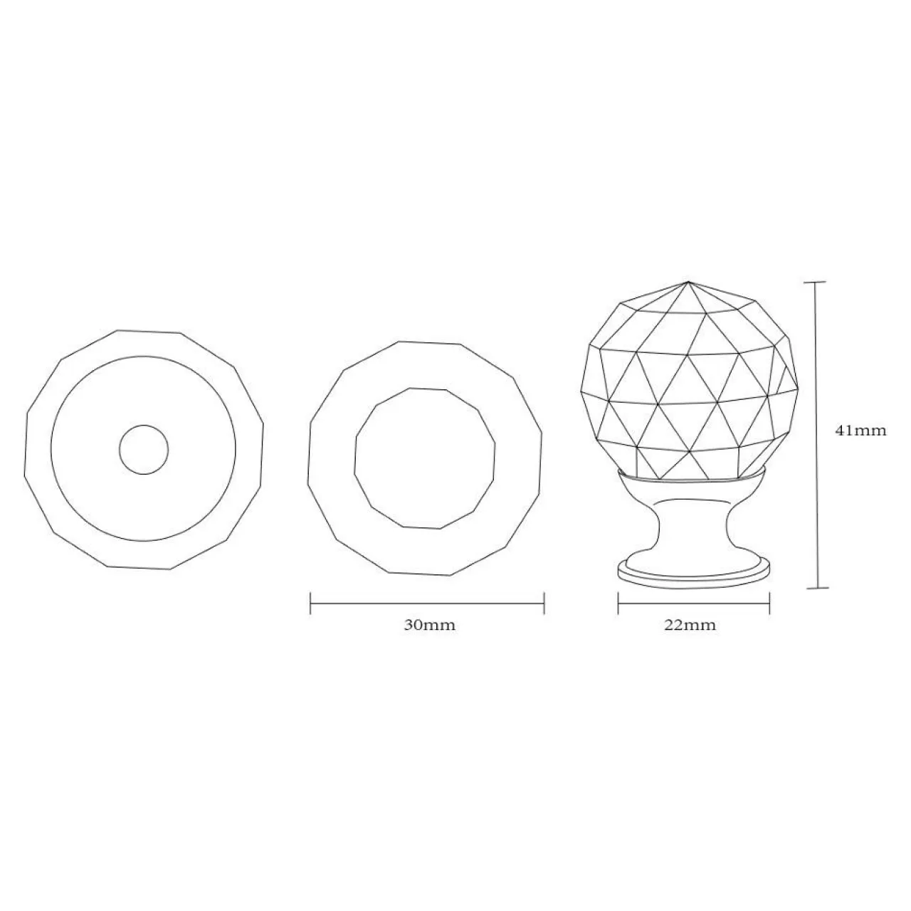 Gałka PORTO KRYSZTAŁ KULA ma średnicę 3 cm (2,2 cm przy podstawie).