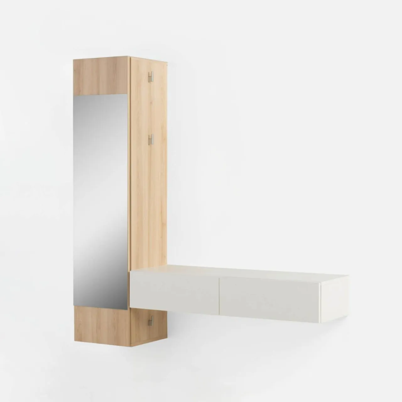 Garderobę GELAZA zmieścisz nawet w małym przedpokoju. Zamontowana na ścianie nie zajmuje miejsca na podłodze, dzięki czemu zyskasz więcej przestrzeni na buty.