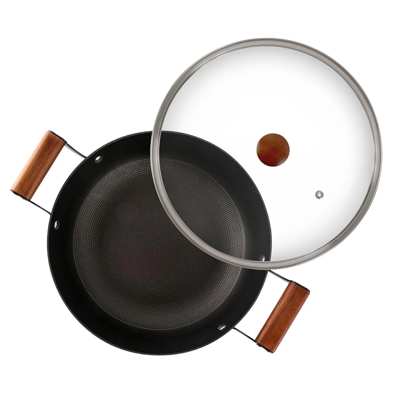Do garnka dołączona jest szklana pokrywka o średnicy: 26 cm. Posiada wygodny, drewniany uchwyt.