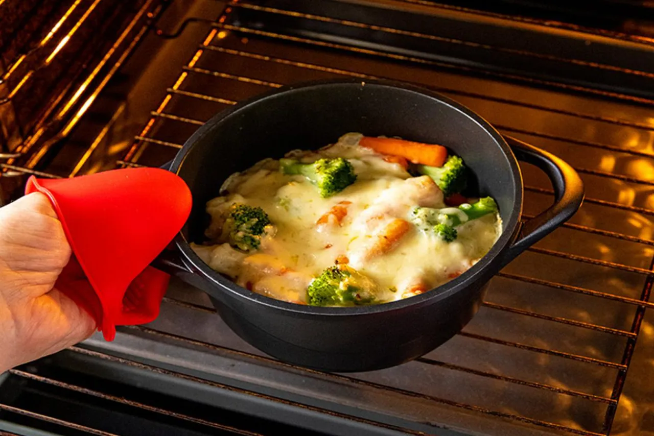 - Do zestawu dołączone są silikonowe rękawice kuchenne, co zwiększa wygodę i bezpieczeństwo podczas gotowania.
