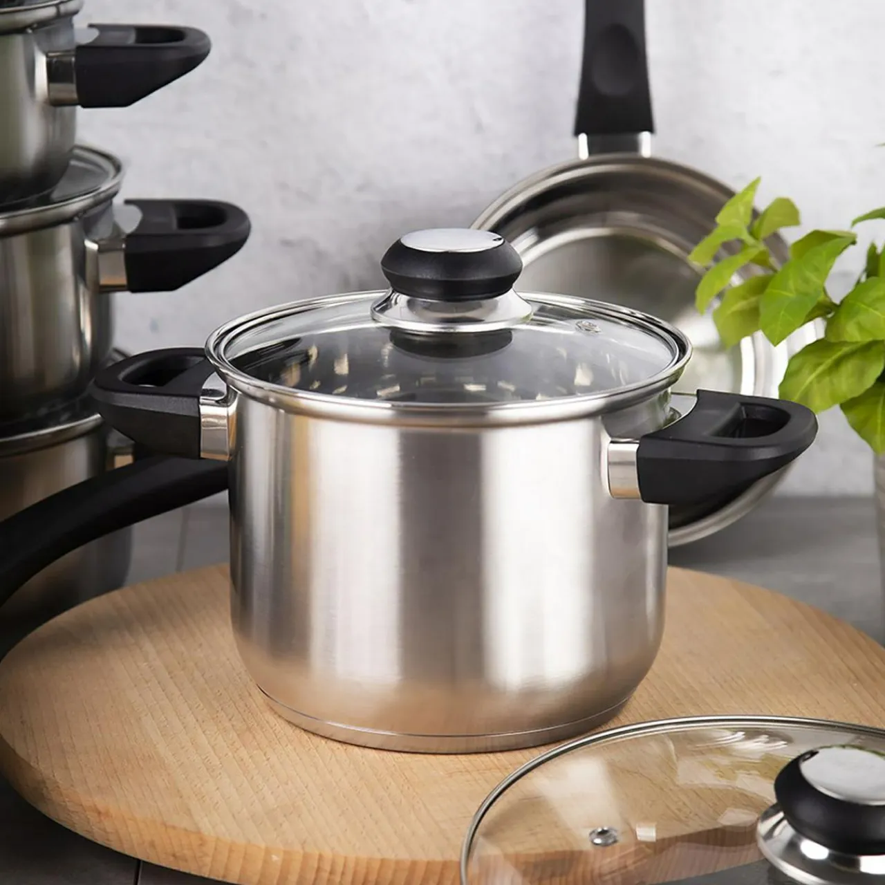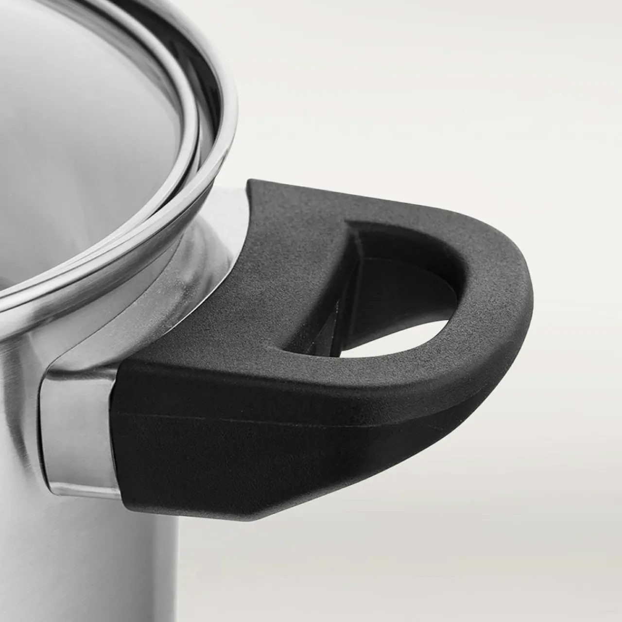 Gotuj z przyjemnością w wysokim garnku ze stali nierdzewnej EMILIO. Będzie odpowiedni na długi makaron, szparagi czy solidną porcję zupy dla całej rodziny.