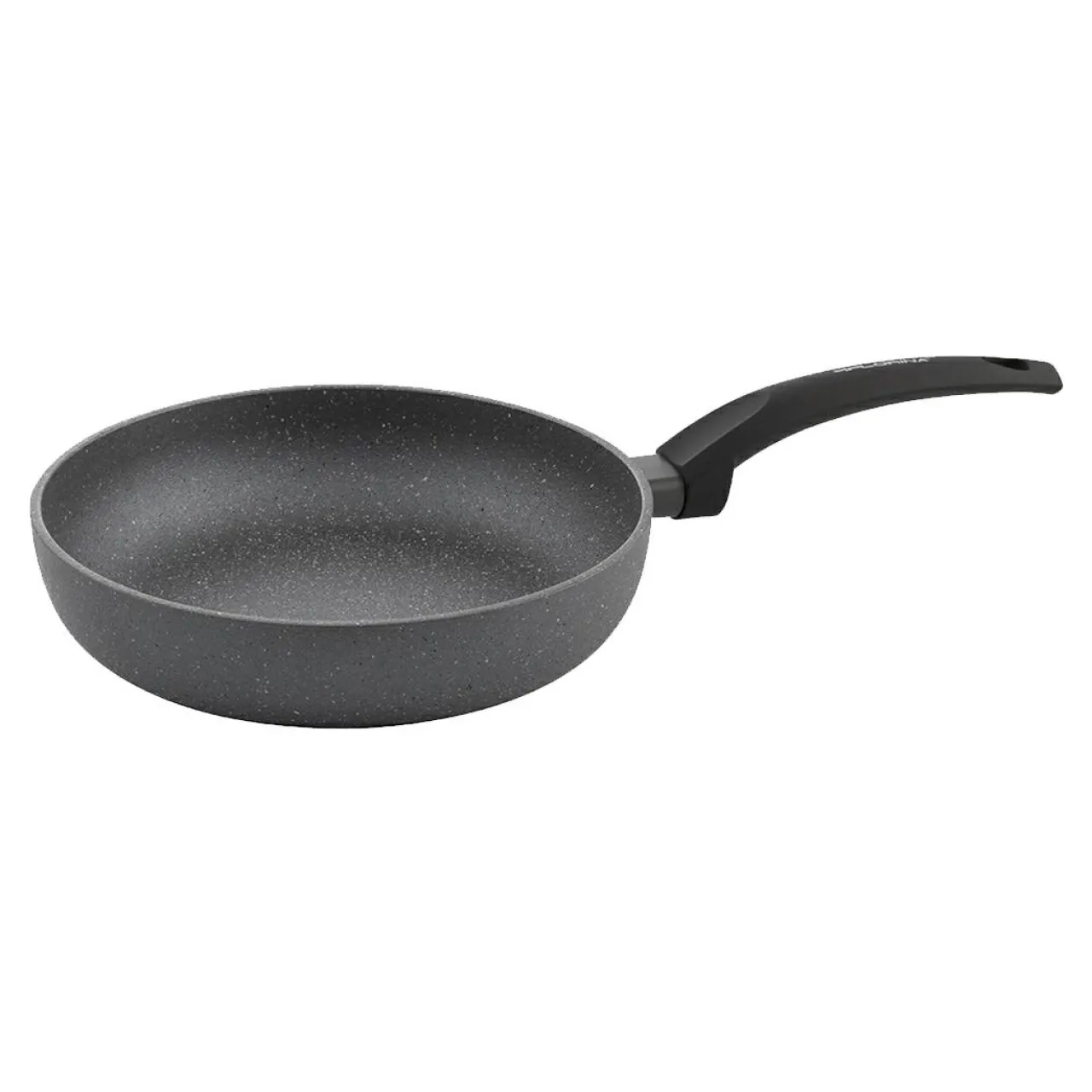 Głęboka patelnia z kolekcji LAVA STONE wykonana została z wysokiej jakości tłoczonego aluminium, pokrytego powłoką nieprzywierającą z drobinkami piasku, imitującą kamień.