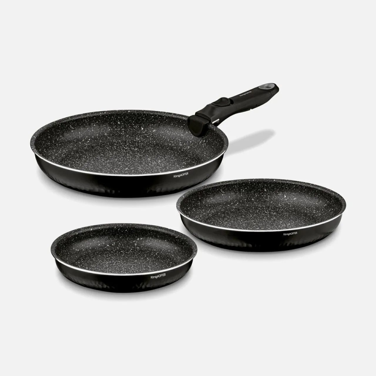 - Dzięki temu, że możesz odpiąć uchwyt, komplet patelni HANDY z łatwością przechowasz w szafce czy głębszej szufladzie. Zestaw sprawdzi się w małej kuchni.