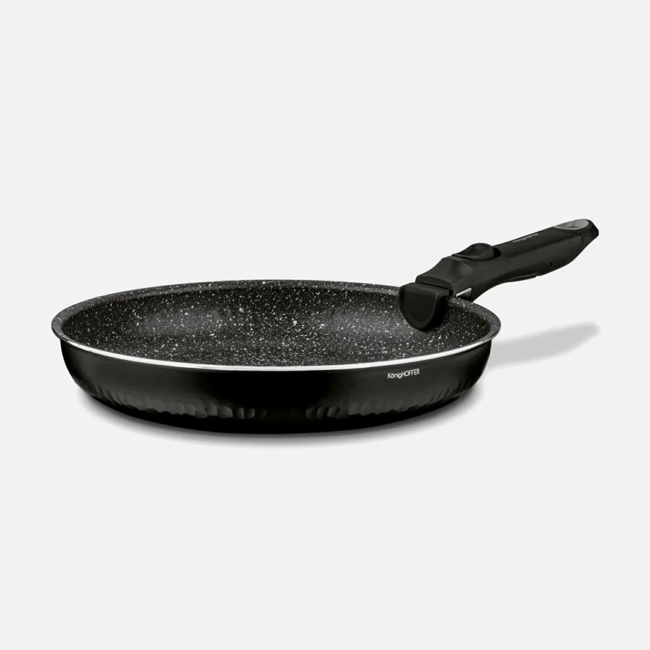 - Korpus patelni jest wykonany z aluminium – naczynie zyskuje na lekkości.