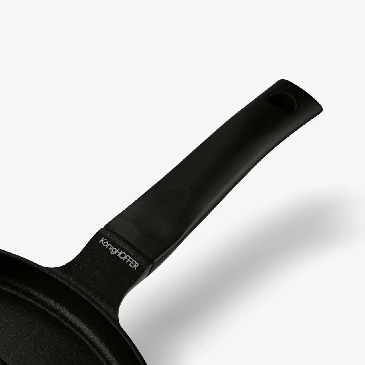- Solidny korpus patelni z aluminium wymaga małej ilości tłuszczu do smażenia, dzięki czemu przygotujesz lekkostrawny posiłek.