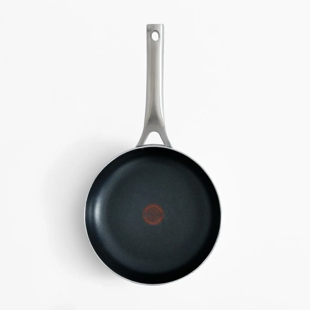 - Metaliczny połysk zewnętrznej strony nadaje patelni elegancki, nowoczesny wygląd