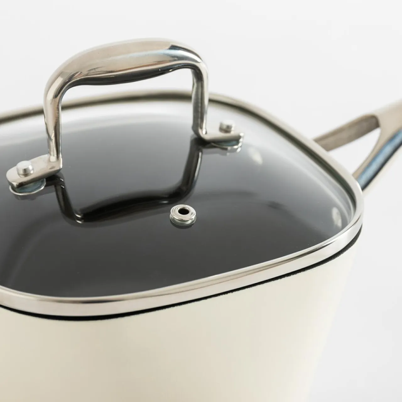 Aluminiowy rondel QUADRATO posiada kwadratową pokrywkę.